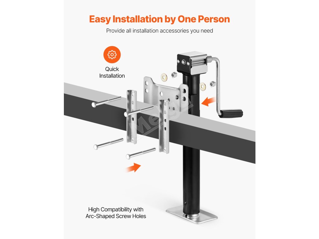Dodávame všetko potrebné príslušenstvo na inštaláciu! Inštalácia je rýchla a jednoduchá. Stojan na zdvihnutie jazyka prívesu môžete mať v okamihu pripravený na prevádzku.