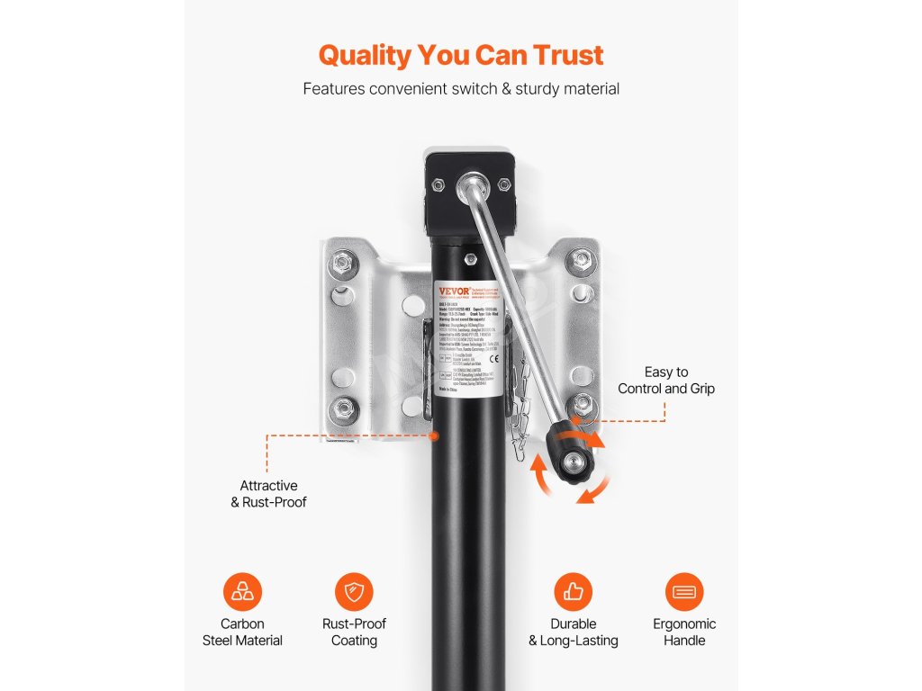 Náš zdvihák prívesov má silnú nosnosť a ergonomickú rukoväť na ľahké zdvíhanie prívesov. Je vyrobený z materiálu z uhlíkovej ocele a má antikoróznu povrchovú úpravu, čo zaručuje jeho dlhodobé používanie!
