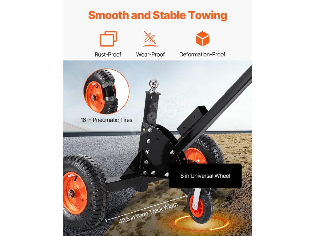 Tento vozík na prívesy má nosnosť 1500 libier, vďaka čomu dokáže ľahko premiestniť ťažké prívesy na krátku vzdialenosť. Inovatívny režim ťahania auta vám umožní presunúť príves autom.