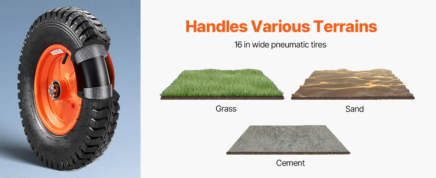 Pneumatiky veľkých rozmerov sa tesne dotýkajú zeme, čím pomáhajú zabezpečiť bezpečné a plynulé odvaľovanie.