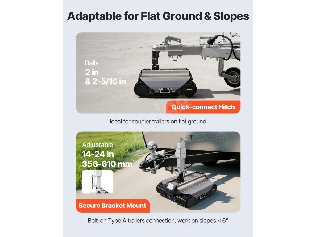 Tento elektrický vozík určený na ťažký ťah, ponúka silný výkon a plynulú prevádzku. Vďaka ovládaniu s veľmi dlhým dosahom, viacsmerovému riadeniu a protišmykovým pásom sa s ním ľahko manévruje. Dva režimy pripojenia sú vhodné pre väčšinu prívesov a obytných vozidiel, zatiaľ čo bezpečnostné funkcie zabezpečujú pokoj.