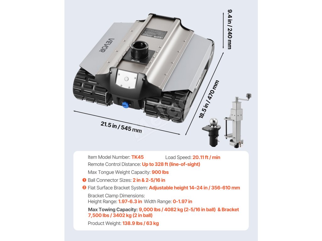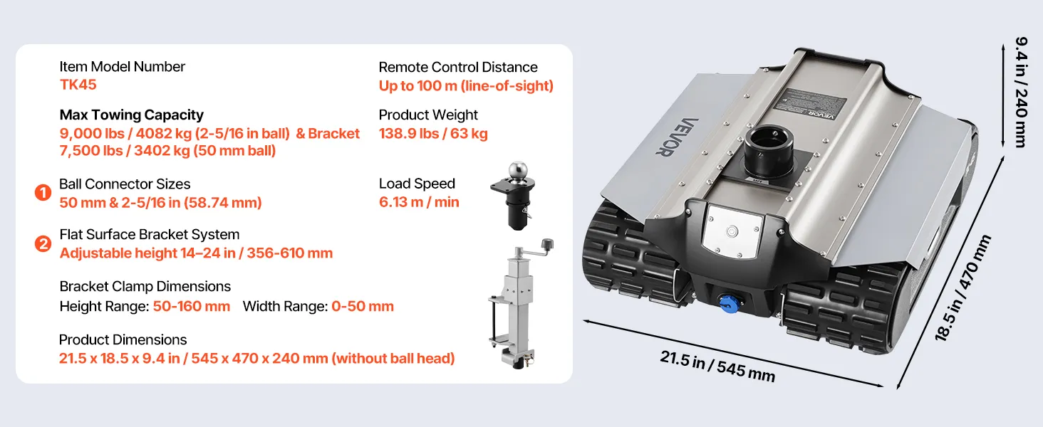 Elektrický posúvač prívesov 4082 kg, diaľkové ovládanie 100 m