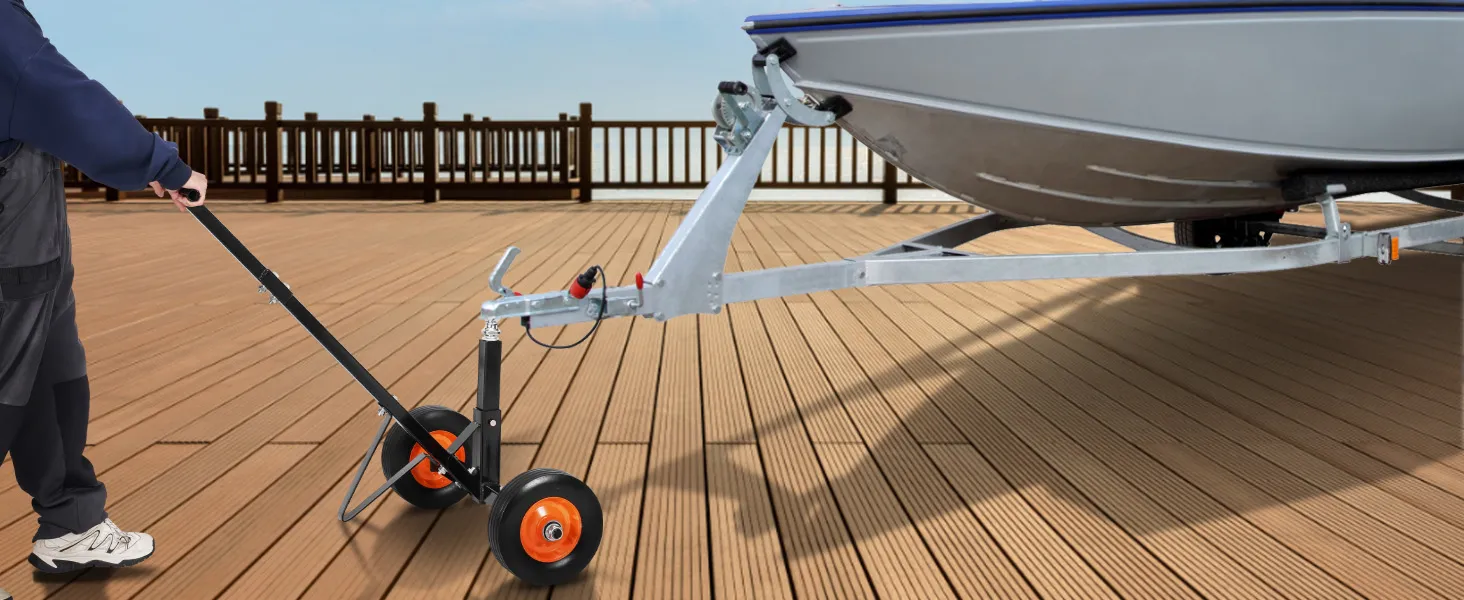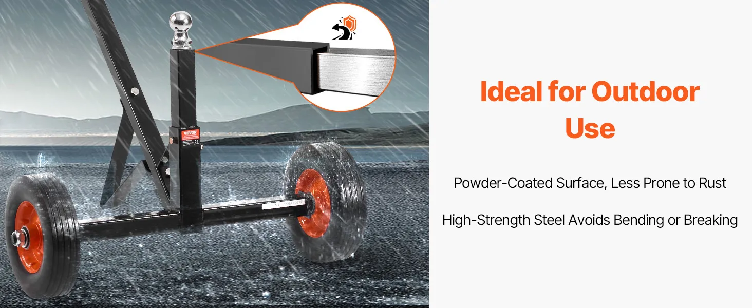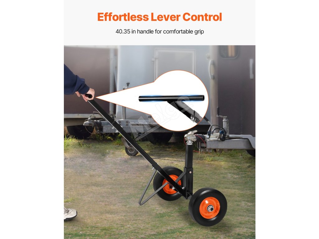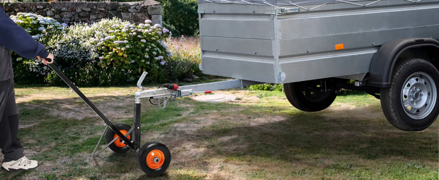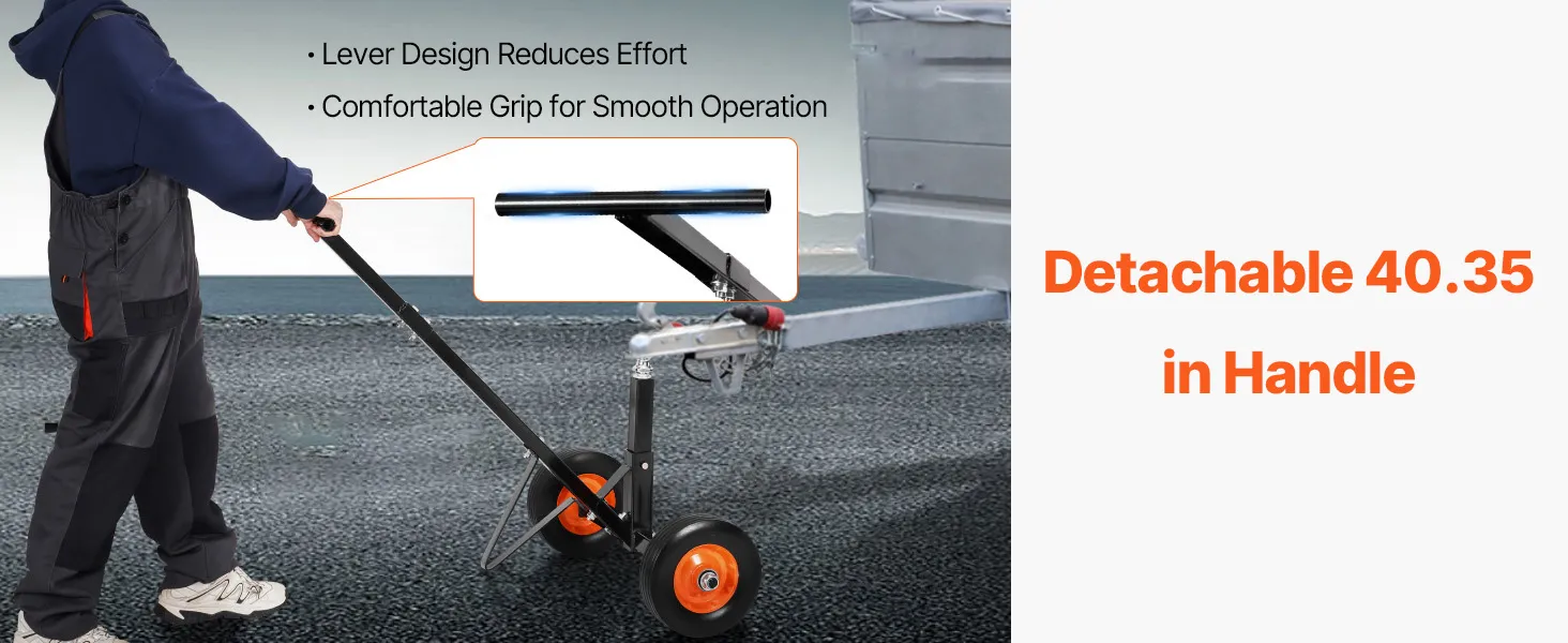 Tento vozík na prívesy má nosnosť jazyka 600 libier, vďaka čomu dokáže ľahko premiestniť ťažké prívesy na krátku vzdialenosť.