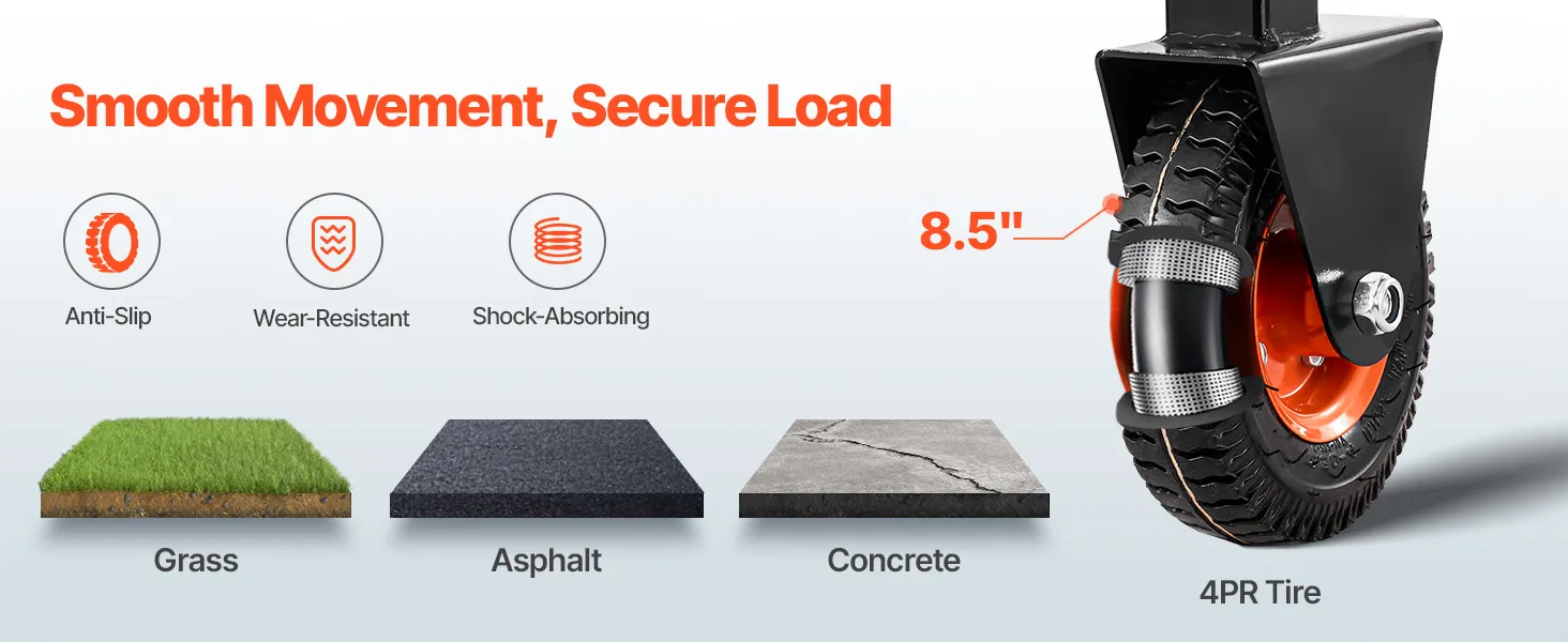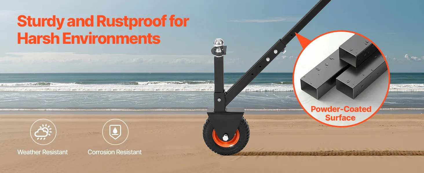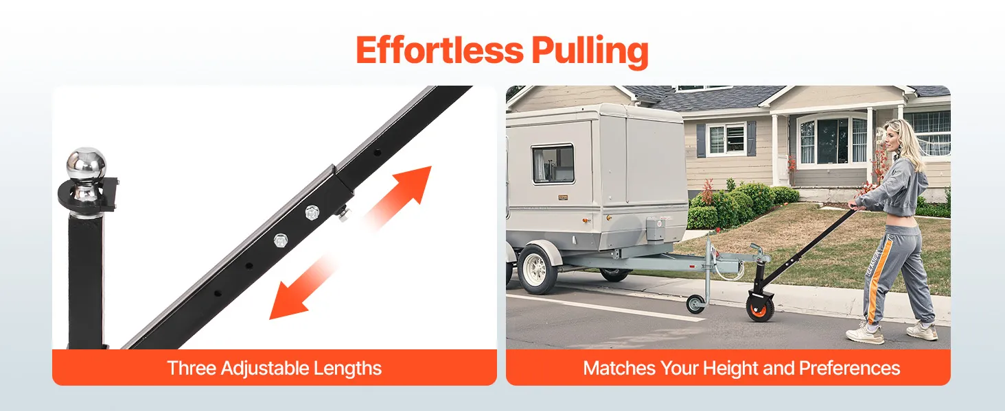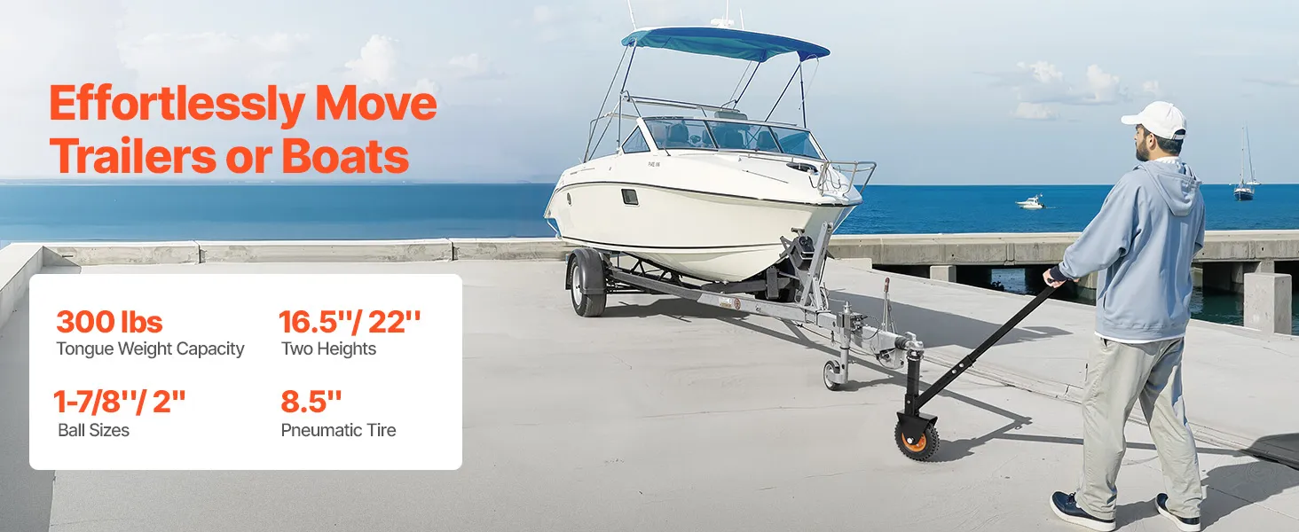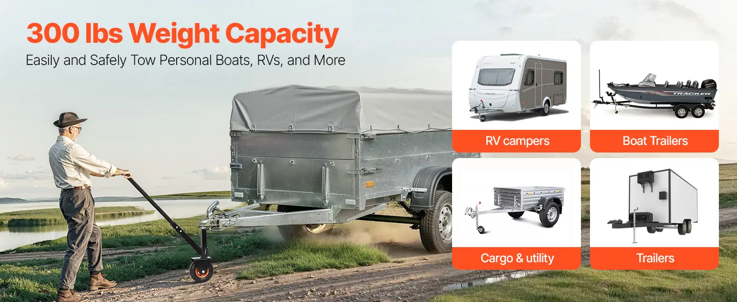 Vďaka maximálnej nosnosti 300 lbs tento vozík za príves zabezpečuje robustné a flexibilné ťahanie širokej škály vozidiel, od obytných automobilov a lodí až po iné rekreačné prívesy, vďaka čomu je správa prívesu bezproblémová.