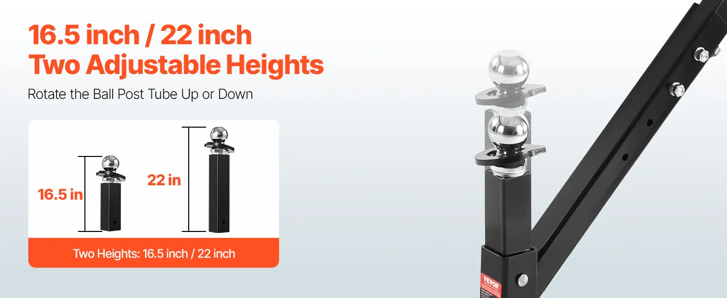 Prívesový vozík 300 lb, výška 16.5–22 inch, 1-7/8/2 inch gule 8.5 inch