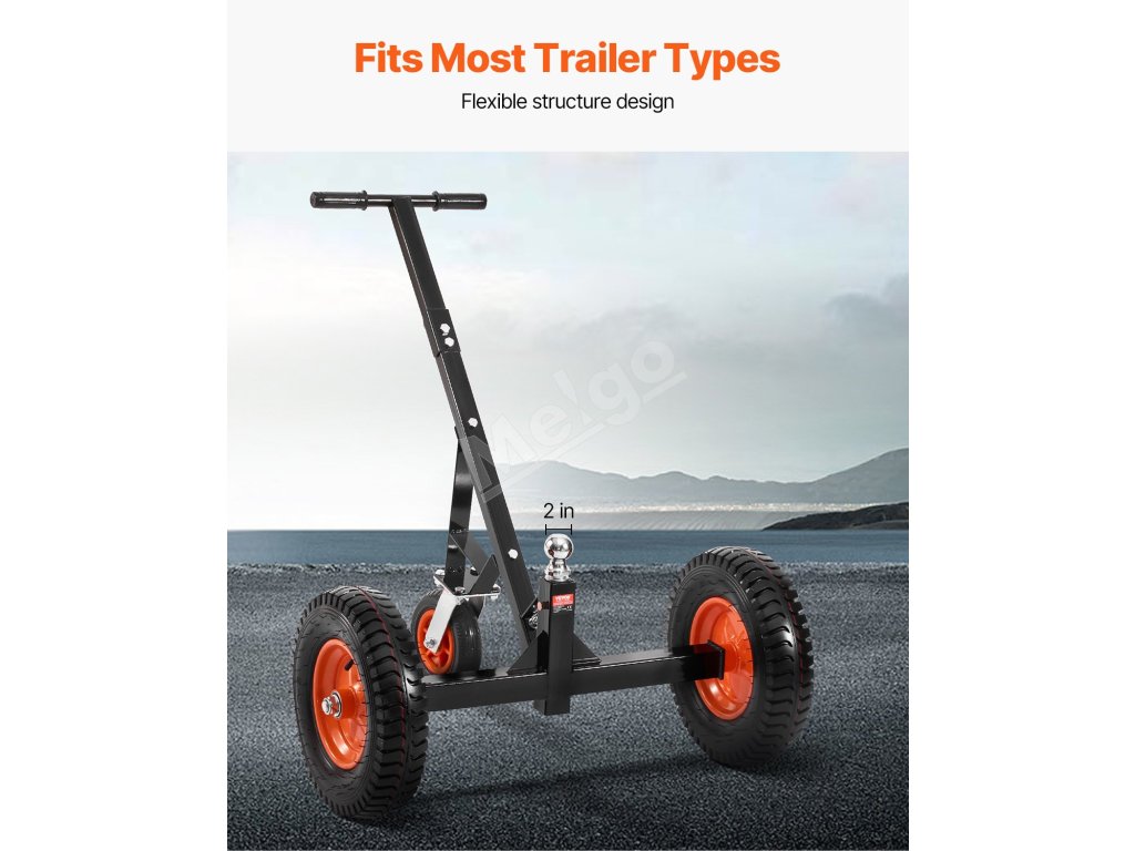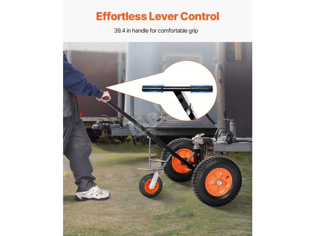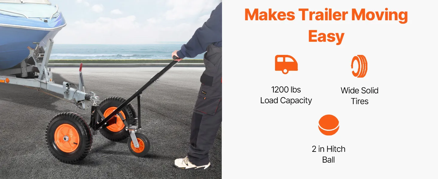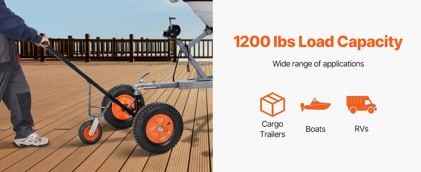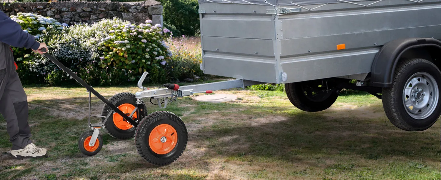 Tento vozík na prívesy má nosnosť jazyka 1200 libier, vďaka čomu dokáže ľahko premiestniť ťažké prívesy na krátku vzdialenosť.