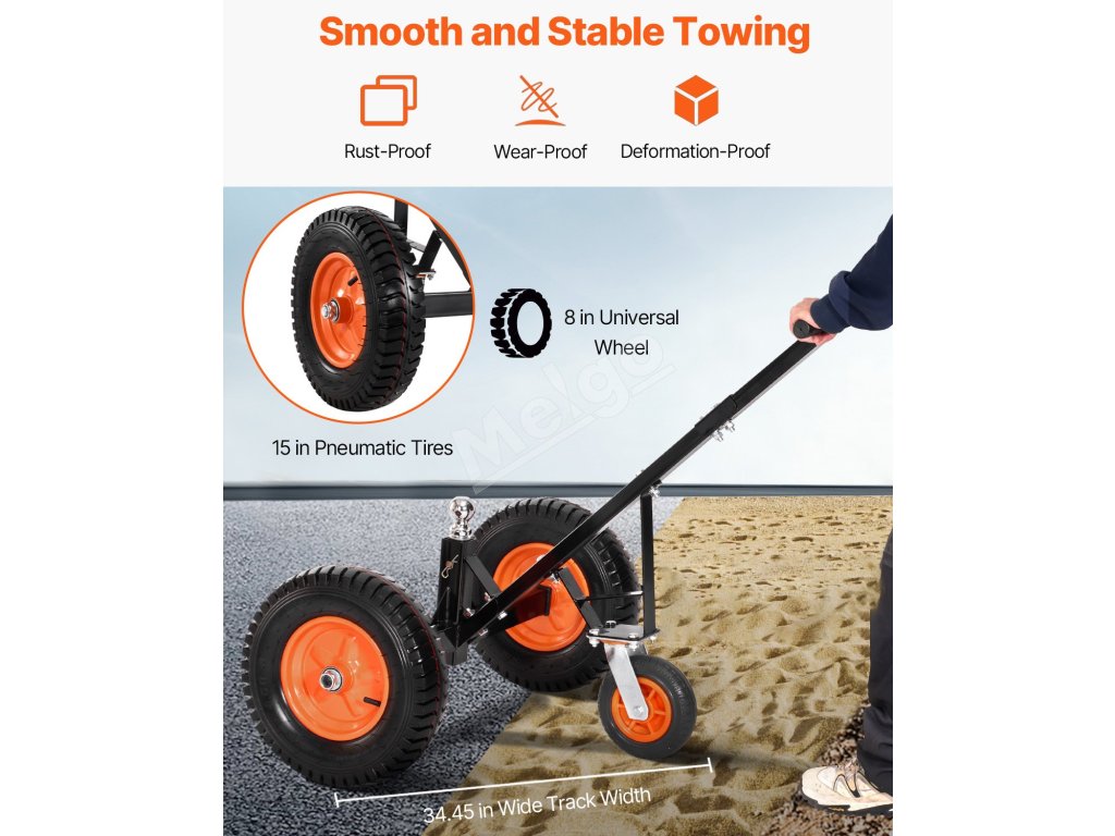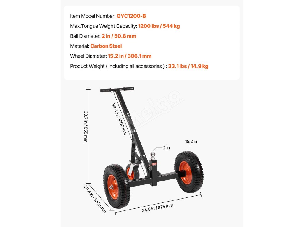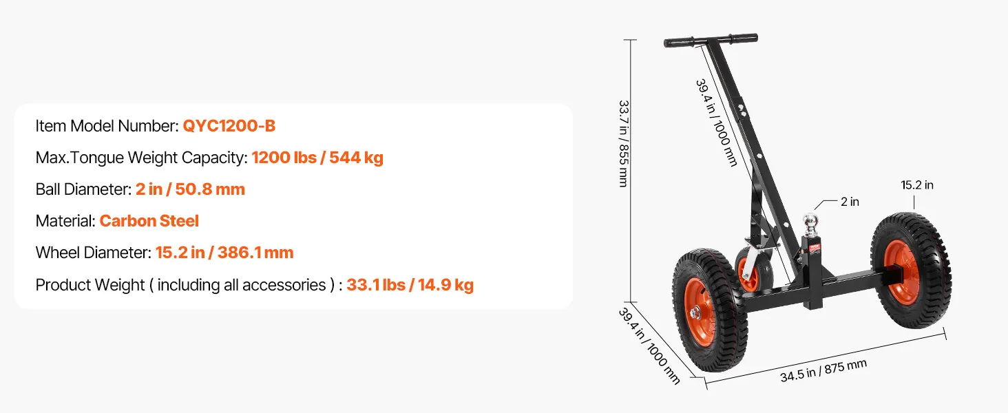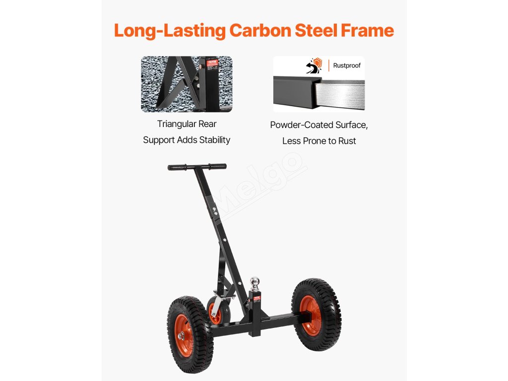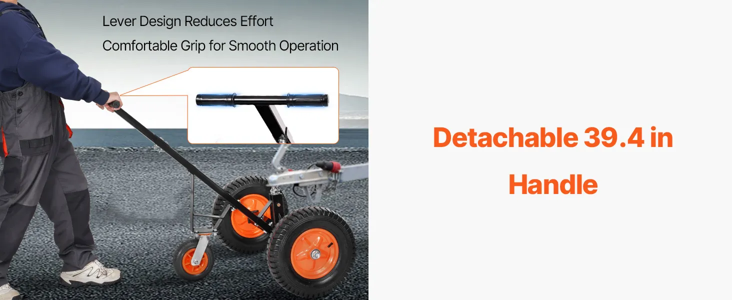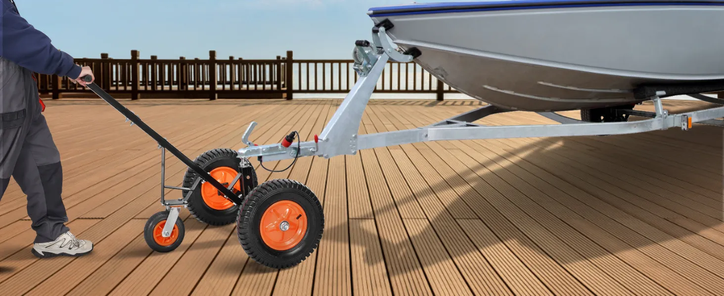 Tento vozík na prívesy má nosnosť jazyka 1200 libier, vďaka čomu dokáže ľahko premiestniť ťažké prívesy na krátku vzdialenosť.