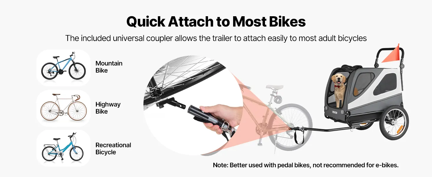 Odpoveď: Je lepšie používať ho s bicyklom s pedálmi. Ak ho používate s elektrobicyklom, udržujte rýchlosť pod 8 MPH (13 km/h) a pri zatáčaní znížte rýchlosť na menej ako 3 MPH (5 km/h), aby ste zaistili bezpečnosť vášho domáceho maznáčika.