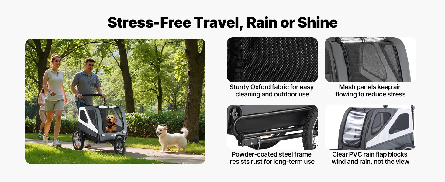 Tento skladací nosič na bicykel s vozíkom pre domáce zvieratá je skvelý na to, aby ste so sebou na vychádzky brali stredne veľké až veľké psy. Vďaka robustnému oceľovému rámu, priedušným sieťovým panelom a zabudovanému vodítku udrží vášho domáceho miláčika v bezpečí a pohodlí pri každom dobrodružstve.
