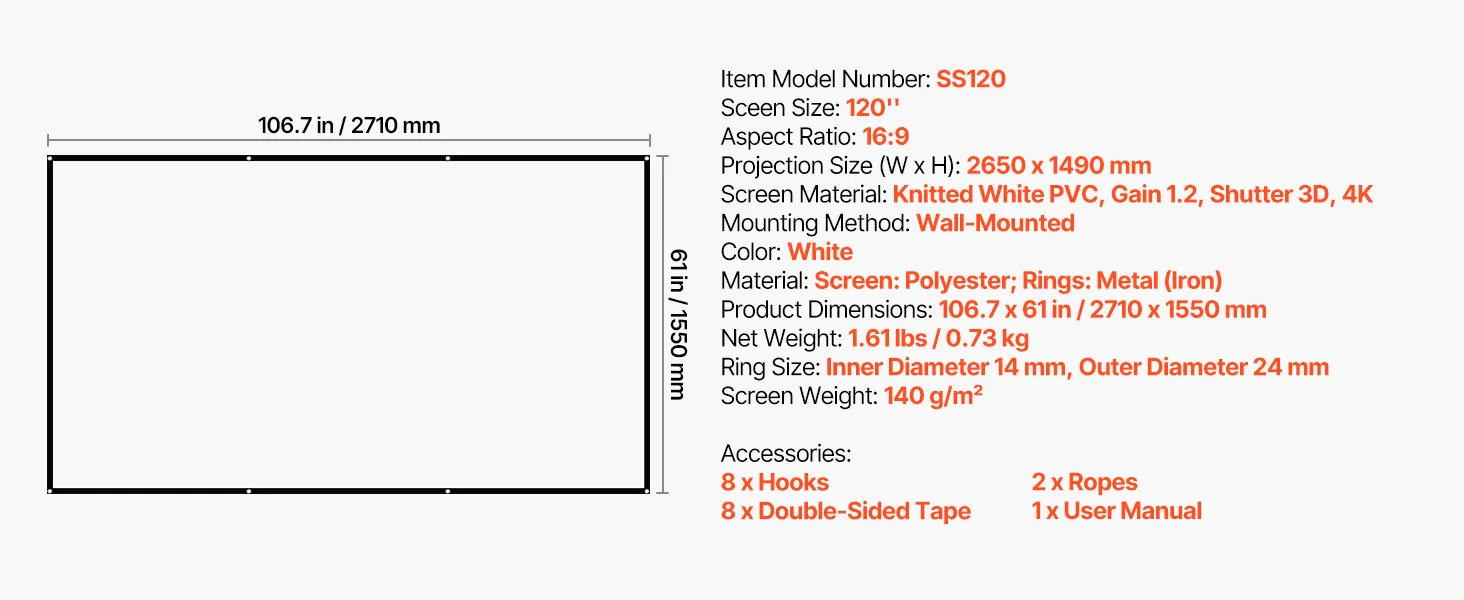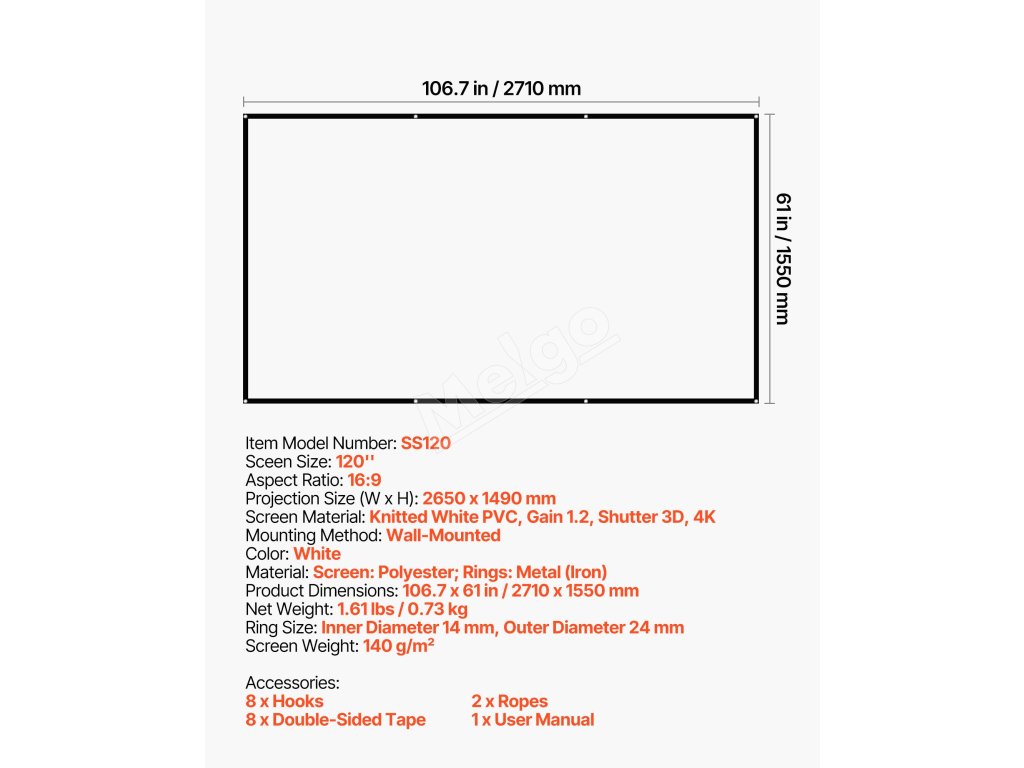 | Rozmery výrobku | 106.7 x 61 palcov / 2710 x 1550 mm |