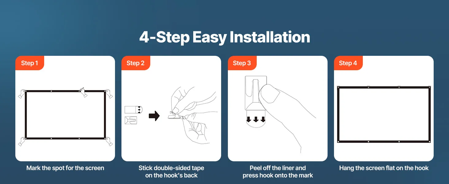 Projekčné plátno 3048 mm 16:9 4k/1080p stenné, 8 háčikov, pásky