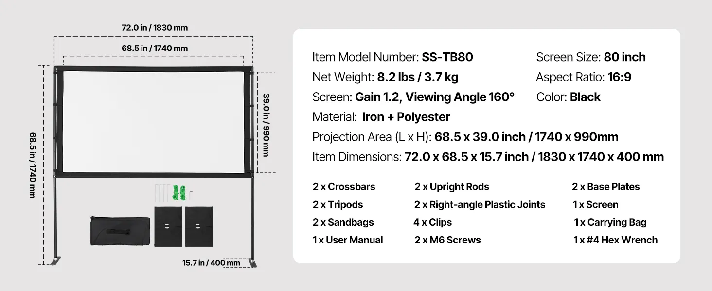 Toto vonkajšie filmové plátno je navrhnuté tak, aby poskytovalo jasný obraz s vysokým rozlíšením a sýtymi farbami. Jeho vhodné rozmery a odolná konštrukcia vám umožnia vychutnať si filmový zážitok s rodinou a priateľmi v interiéri aj exteriéri.