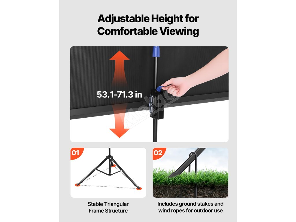 Toto vonkajšie filmové plátno je navrhnuté tak, aby poskytovalo jasný obraz s vysokým rozlíšením a sýtymi farbami. Jeho vhodné rozmery a odolná konštrukcia vám umožnia vychutnať si filmový zážitok s rodinou a priateľmi v interiéri aj exteriéri.