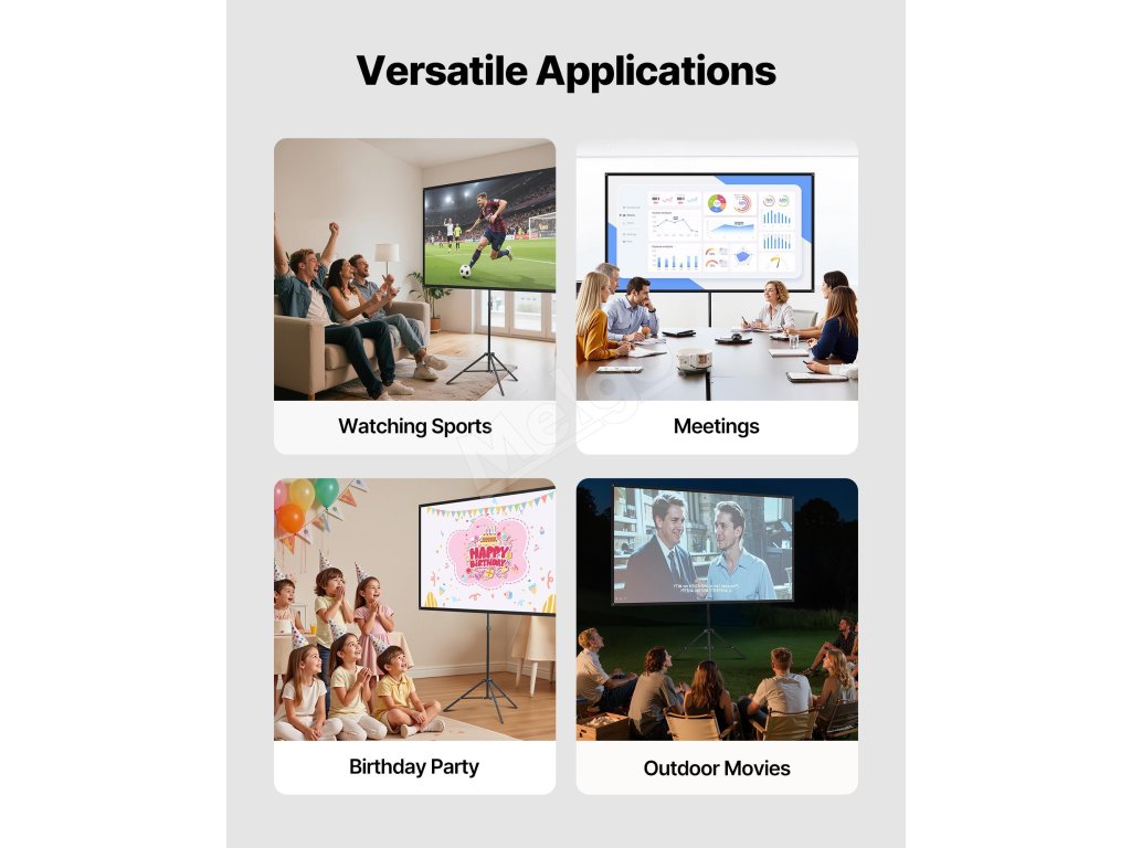 Toto vonkajšie filmové plátno je navrhnuté tak, aby poskytovalo jasný obraz s vysokým rozlíšením a sýtymi farbami. Jeho vhodné rozmery a odolná konštrukcia vám umožnia vychutnať si filmový zážitok s rodinou a priateľmi v interiéri aj exteriéri.