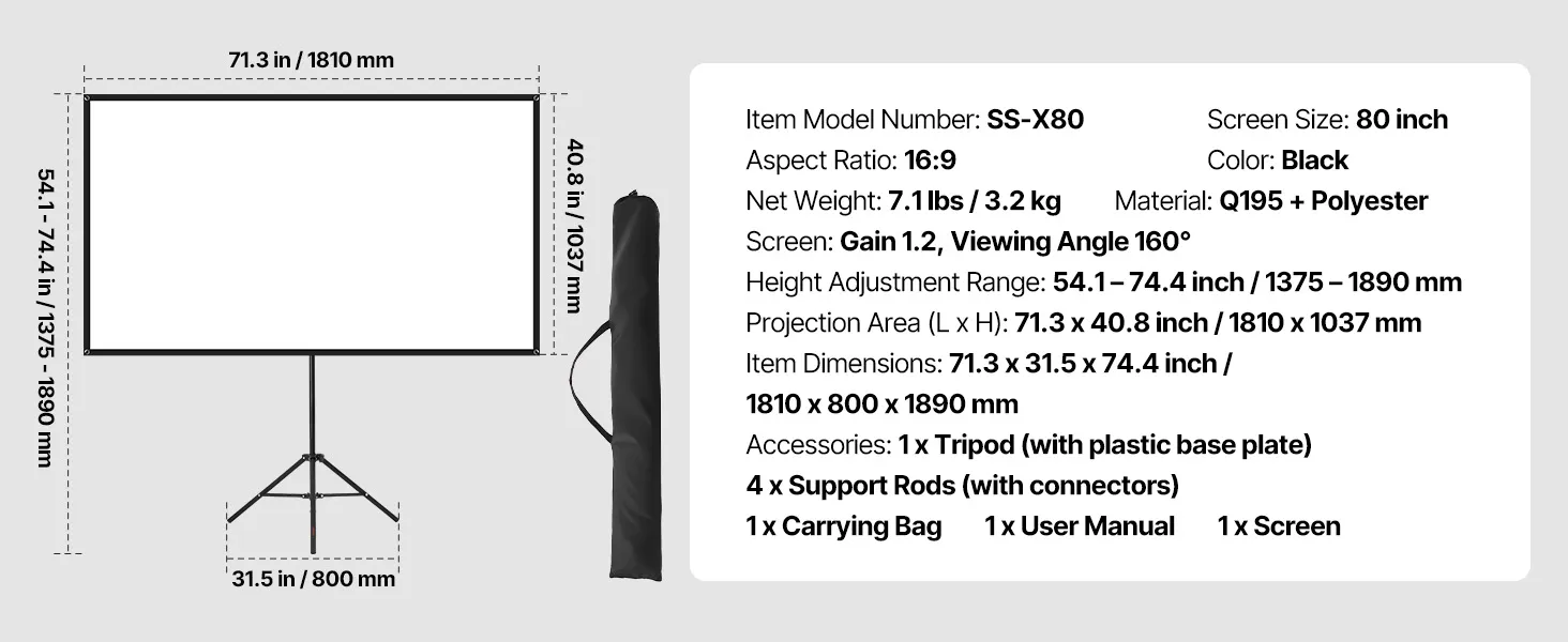 Projektorové plátno na statíve 80 inch 16:9 4k vonkajšie s obalom