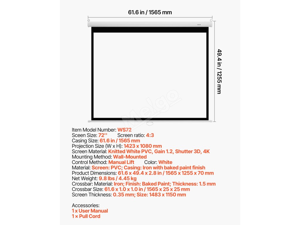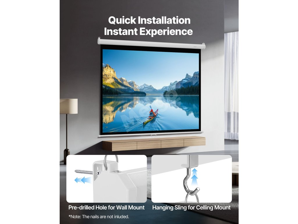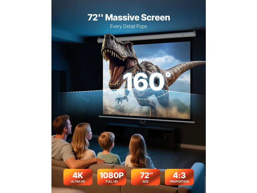 Sťahovacie projekčné plátno 1829 mm 4:3 4k/1080 hd na stenu s lanom