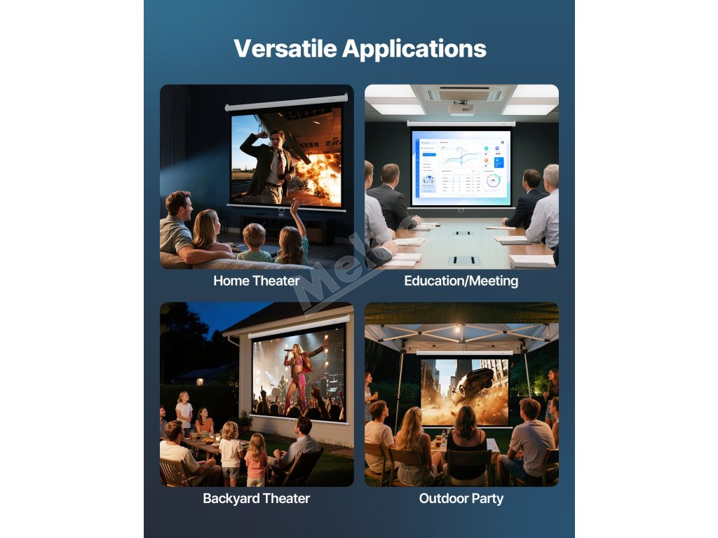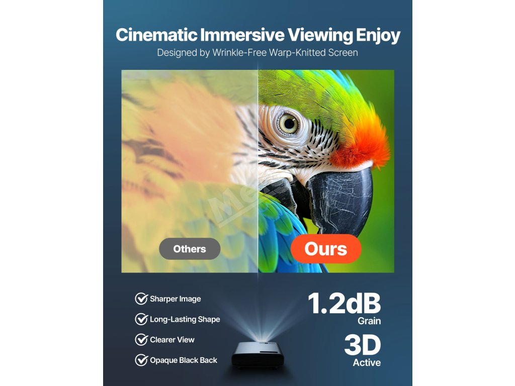 | Materiál obrazovky | Pletené biele PVC, zosilnenie 1,2, uzávierka 3D, 4K |