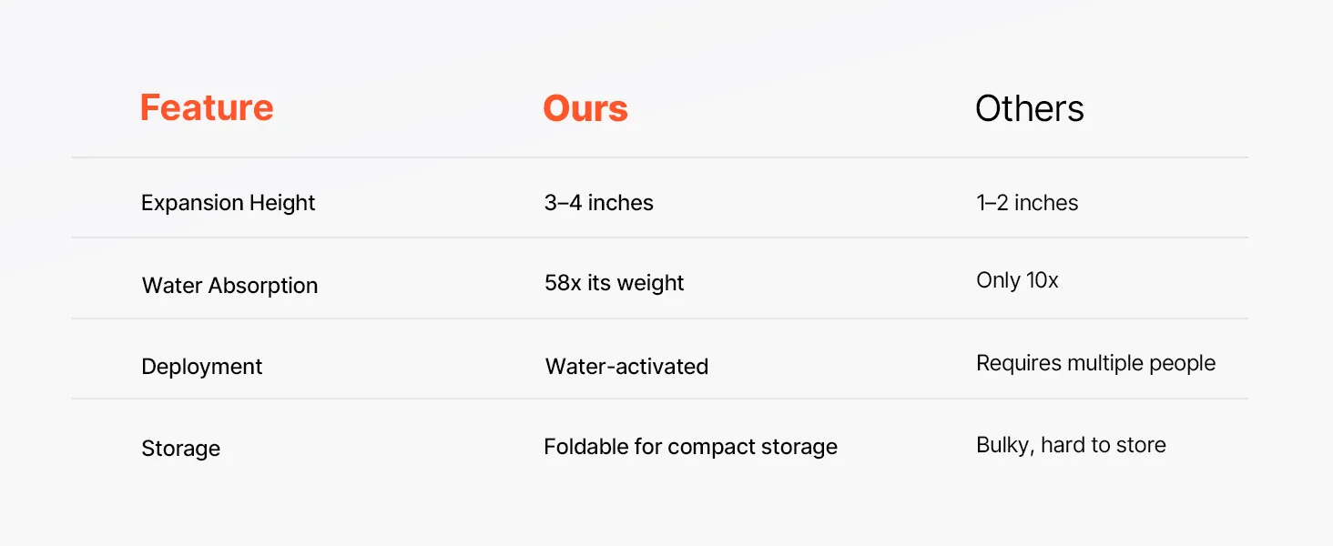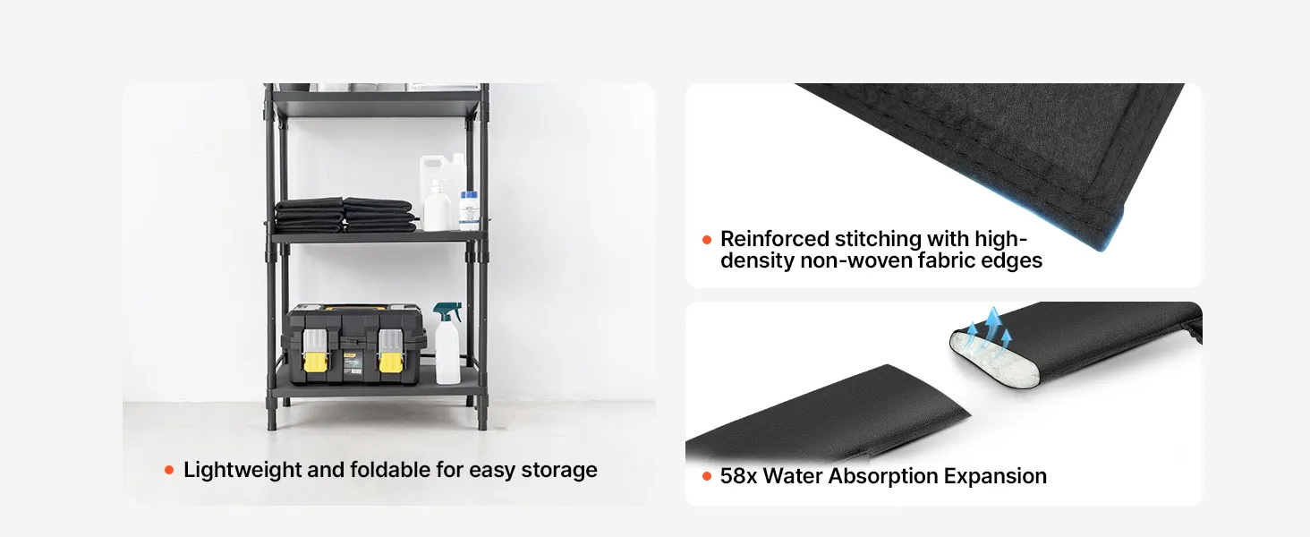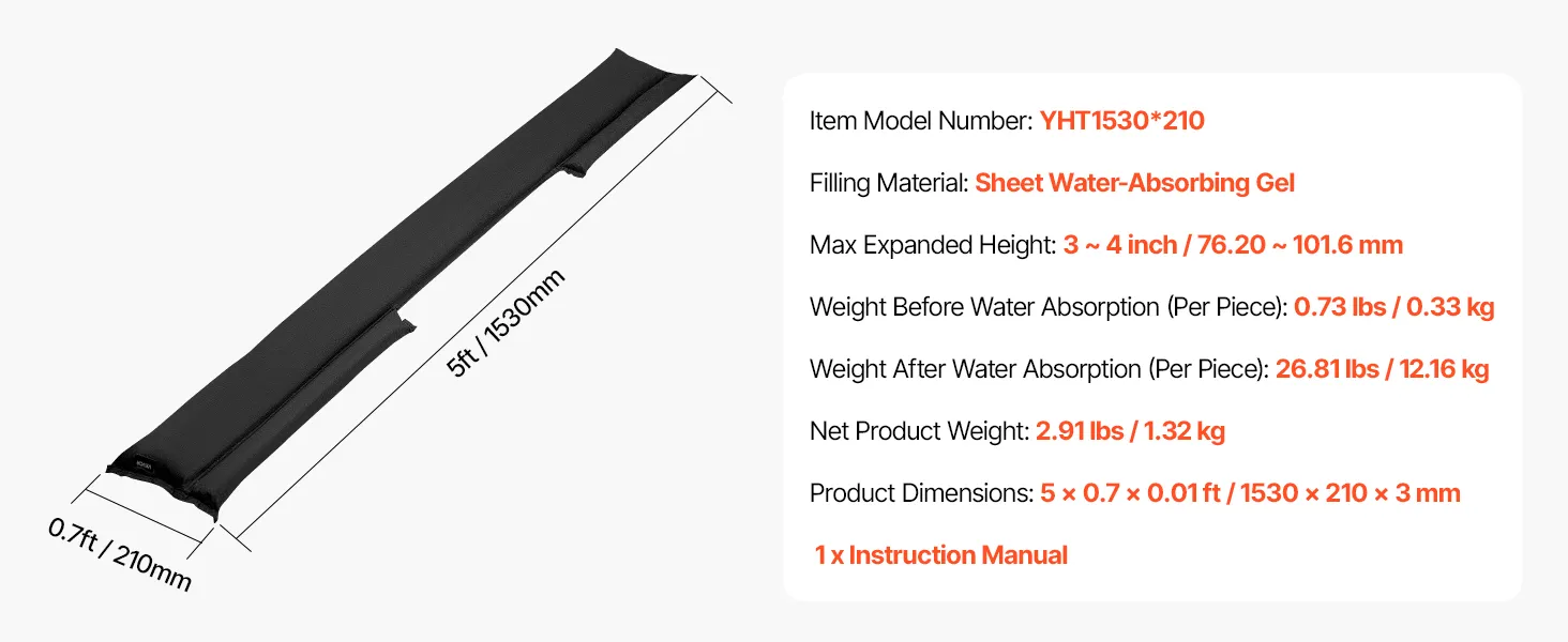 Odpoveď: 1. Nie je vhodná na rýchlo tečúcu vodu alebo dlhodobú pevnú ochranu. 2. Funguje na rovných povrchoch (betón/dlažba/asfalt); vyhýbajte sa ostrým predmetom. 3. Pred uskladnením musí byť dôkladne vysušený - čas schnutia sa líši podľa podnebia.