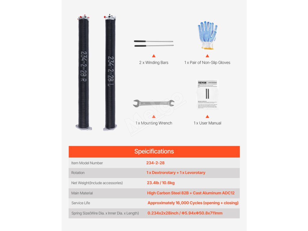 Torzné pružiny do garážových dverí 0.234×2×28 in, 16000 cyklov, sada
