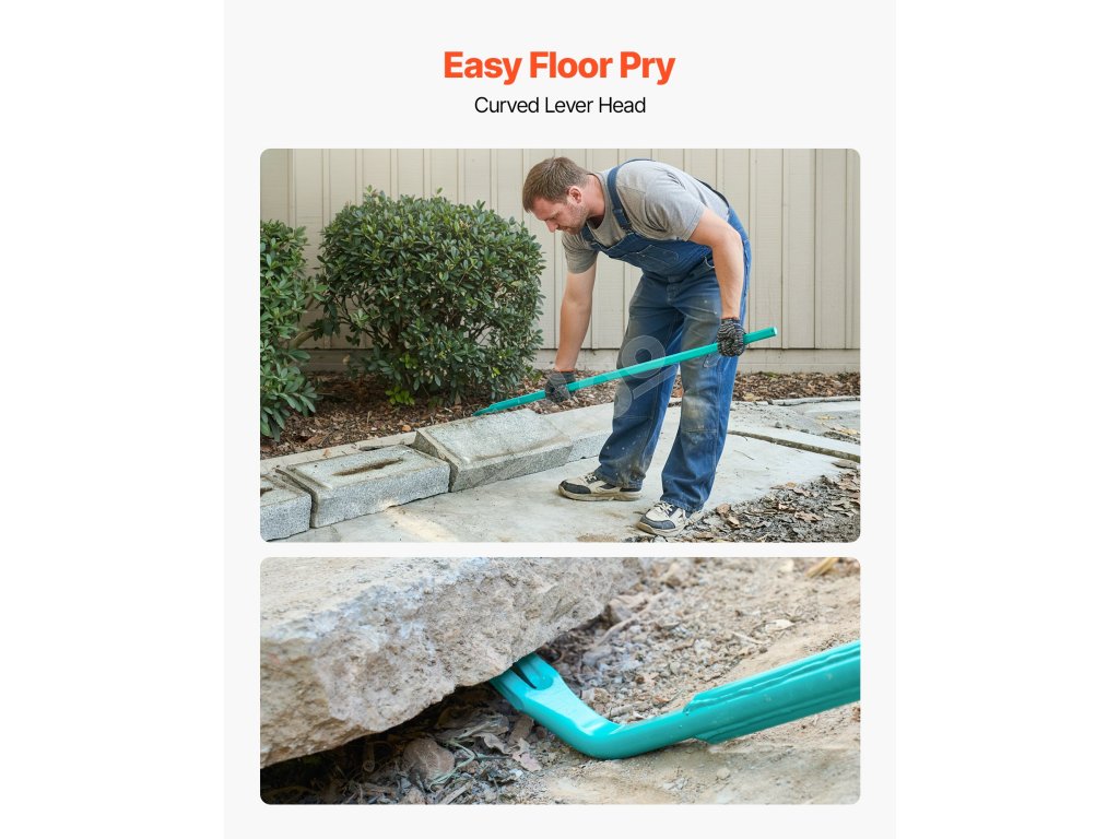 Toto telo z masívnej ocele je spojené s dlhou páčkou, čím sa zvyšuje stabilita. Môžete s istotou nastaviť uhly a udržať nástroj stabilný pri rôznych úlohách na podlahe a pri demolácii.