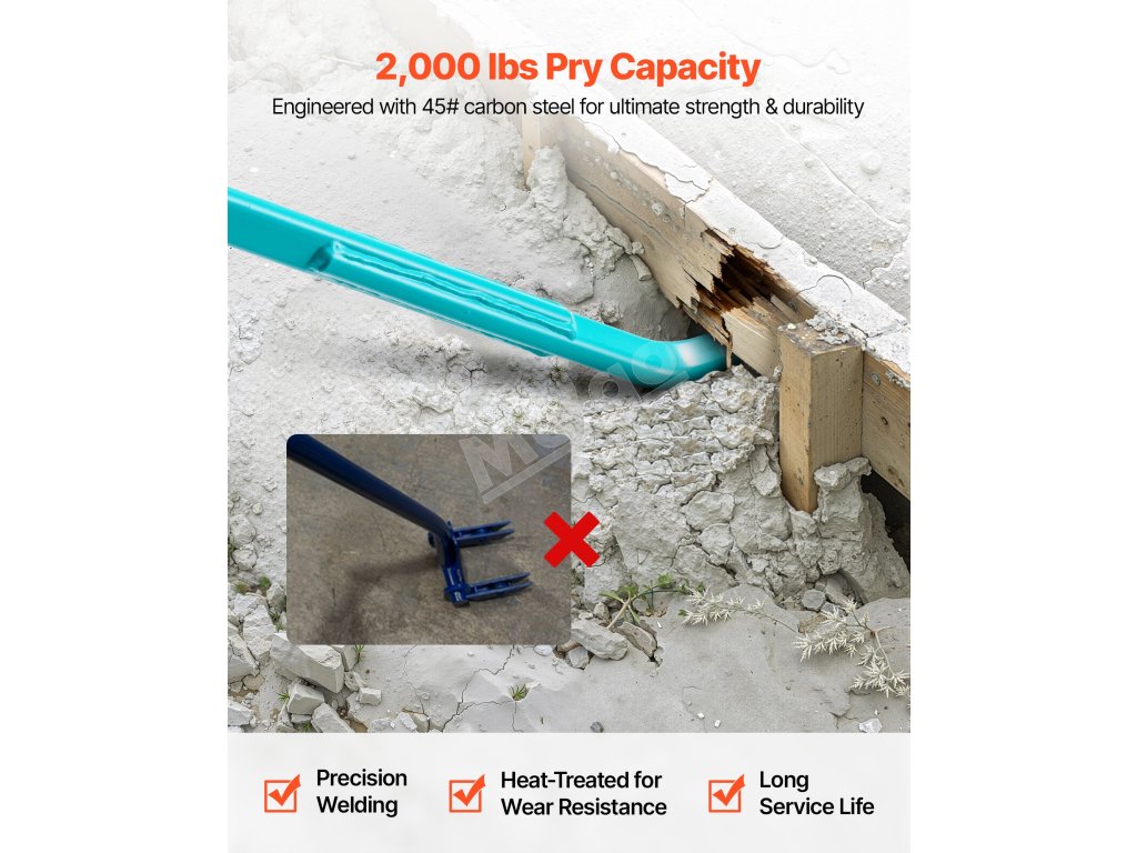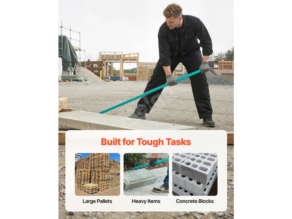 Dlhá páka páčidla umožňuje zdvihnúť voľné formy, betón a zapustené kusy s menšou námahou. Tepelne spracovaná uhlíková oceľ 45# poskytuje páčidlo s nosnosťou až 2 000 lb a dlhou životnosťou. Ergonomická rukoväť s dĺžkou 52,5 palca znižuje ohyb a oko na vytiahnutie klincov urýchľuje demontáž.