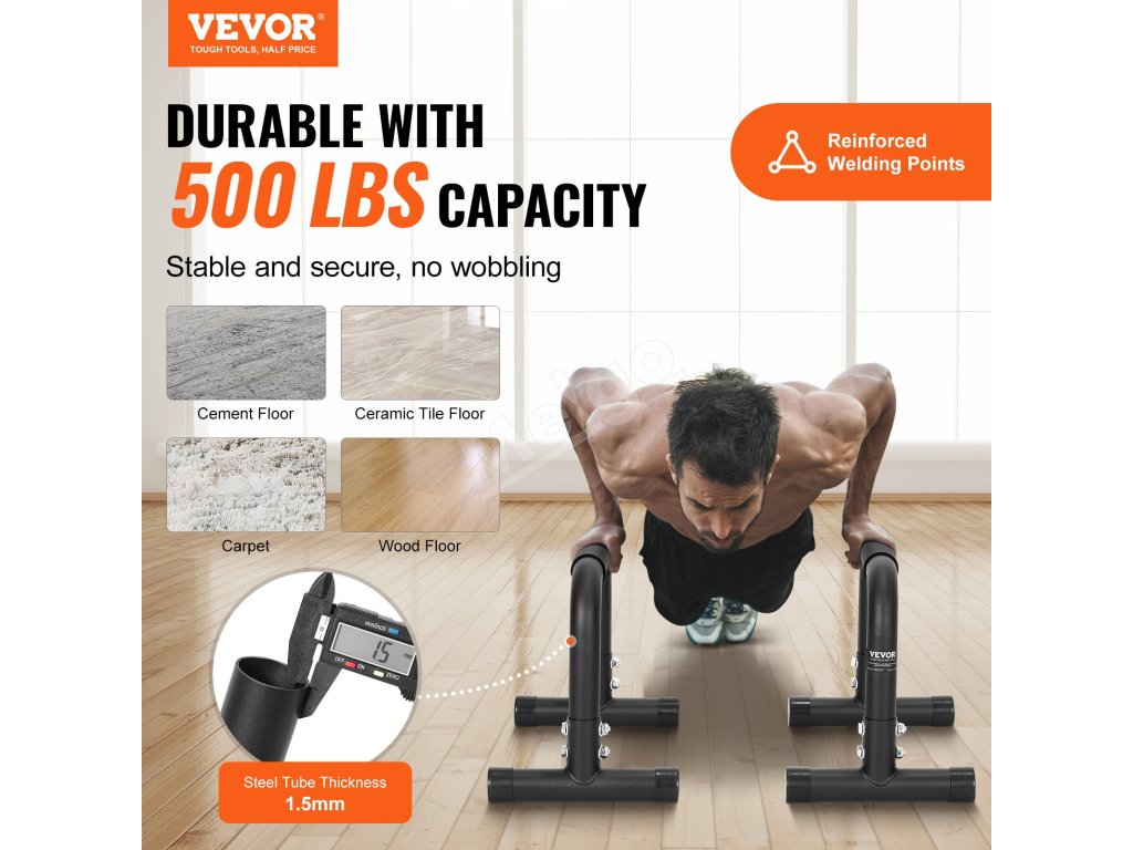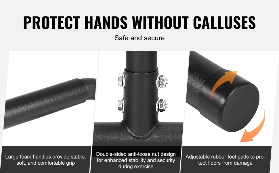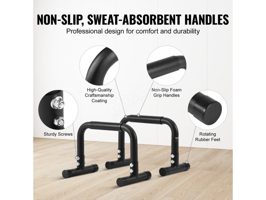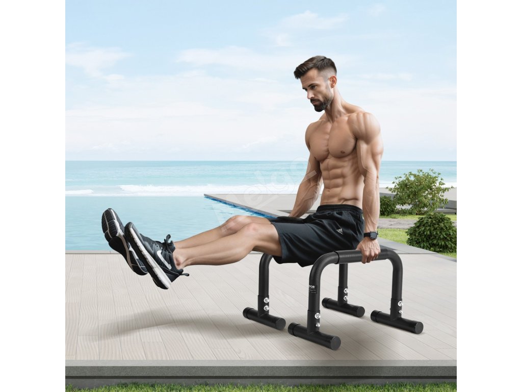 Vychutnajte si pohodlný úchop vďaka ergonomickým penovým rukovätiam nášho stojana na dipy, ktoré znižujú únavu rúk a zlepšujú váš zážitok z cvičenia. Gumené nožičky zaisťujú stabilitu a ochranu podlahy, takže sa môžete sústrediť na svoje opakovania bez obáv z pošmyknutia alebo poškodenia.