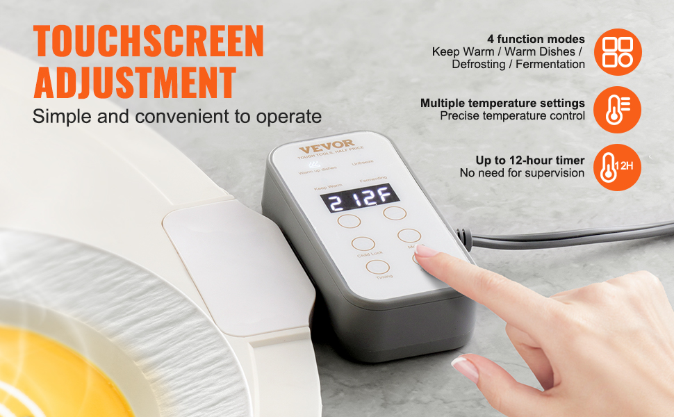 Naša elektrická ohrievacia tácka má 4 funkčné režimy a viacero nastaviteľných teplotných nastavení, dotykový displej umožňuje jednoduché a pohodlné ovládanie.