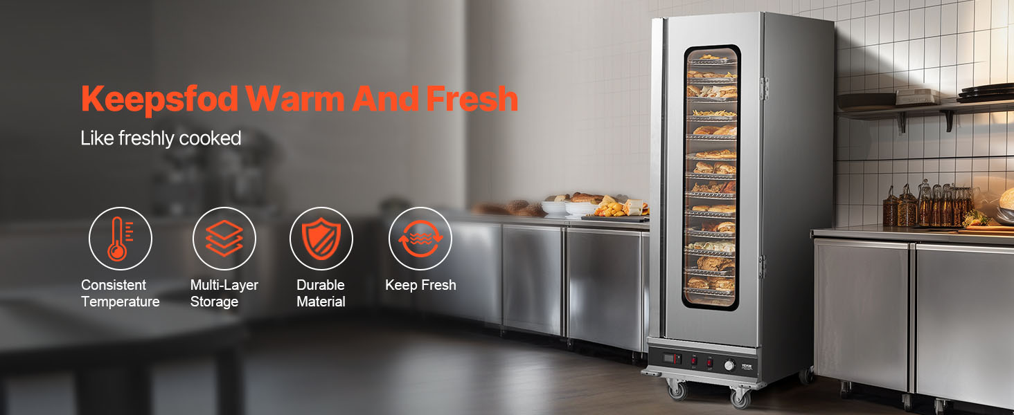 Naša ohrievacia skriňa na potraviny poskytuje stálu teplotu, udržiava pokrmy teplé a čerstvé bez vysušovania, takže vaše chutné jedlo vyzerá ako čerstvo uvarené.