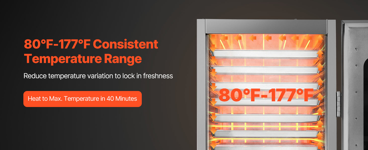 Teplotný rozsah 80℉-177℉, ktorý umožňuje nastaviť rôzne teploty pre rôzne potraviny. Zabezpečuje optimálnu konzerváciu a zároveň znižuje teplotné výkyvy, aby sa uzamkli výživné látky.
