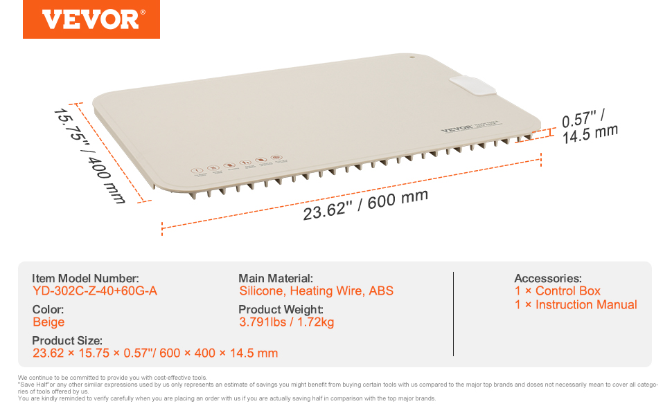| Veľkosť výrobku | 23.62 x 15,75 x 0,57 palca / 600 x 400 x 14,5 mm |