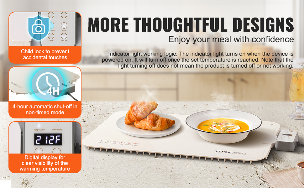Celý povrch elektrického ohrievacieho podnosu sa rovnomerne ohrieva, čím zabezpečuje dlhotrvajúce teplo pre vaše jedlo, takže si môžete kedykoľvek vychutnať teplé jedlá.