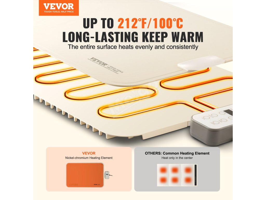 Celý povrch elektrického ohrievacieho podnosu sa rovnomerne ohrieva, čím zabezpečuje dlhotrvajúce teplo pre vaše jedlo, takže si môžete kedykoľvek vychutnať teplé jedlá.
