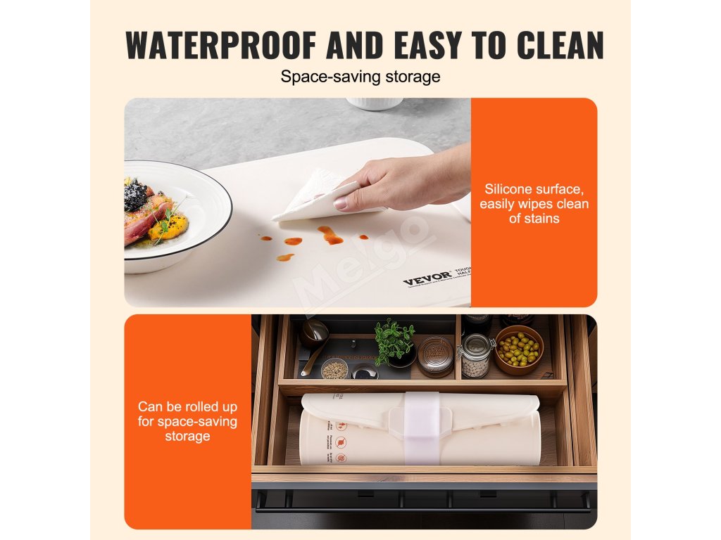 Hladký povrch sa ľahko čistí a udržiava. Jeho kompaktný dizajn umožňuje skladovanie v rolovacom režime, čím sa ušetrí ešte viac miesta.