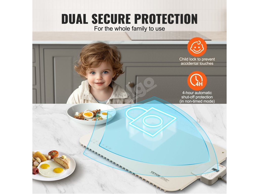 Ohrievacia platňa je vybavená detskou poistkou a ochranou proti automatickému vypnutiu, čo zaručuje bezpečné a pohodlné používanie.
