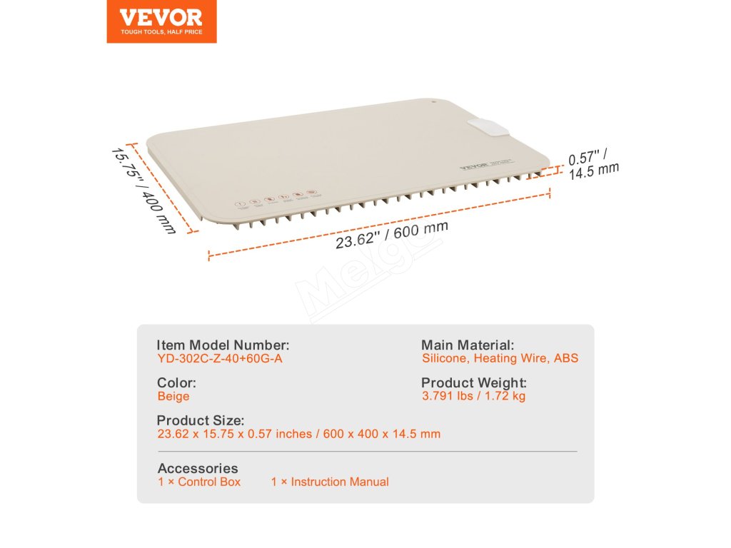 | Veľkosť výrobku | 23.62 x 15,75 x 0,57 palca / 600 x 400 x 14,5 mm |
