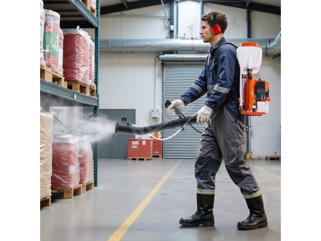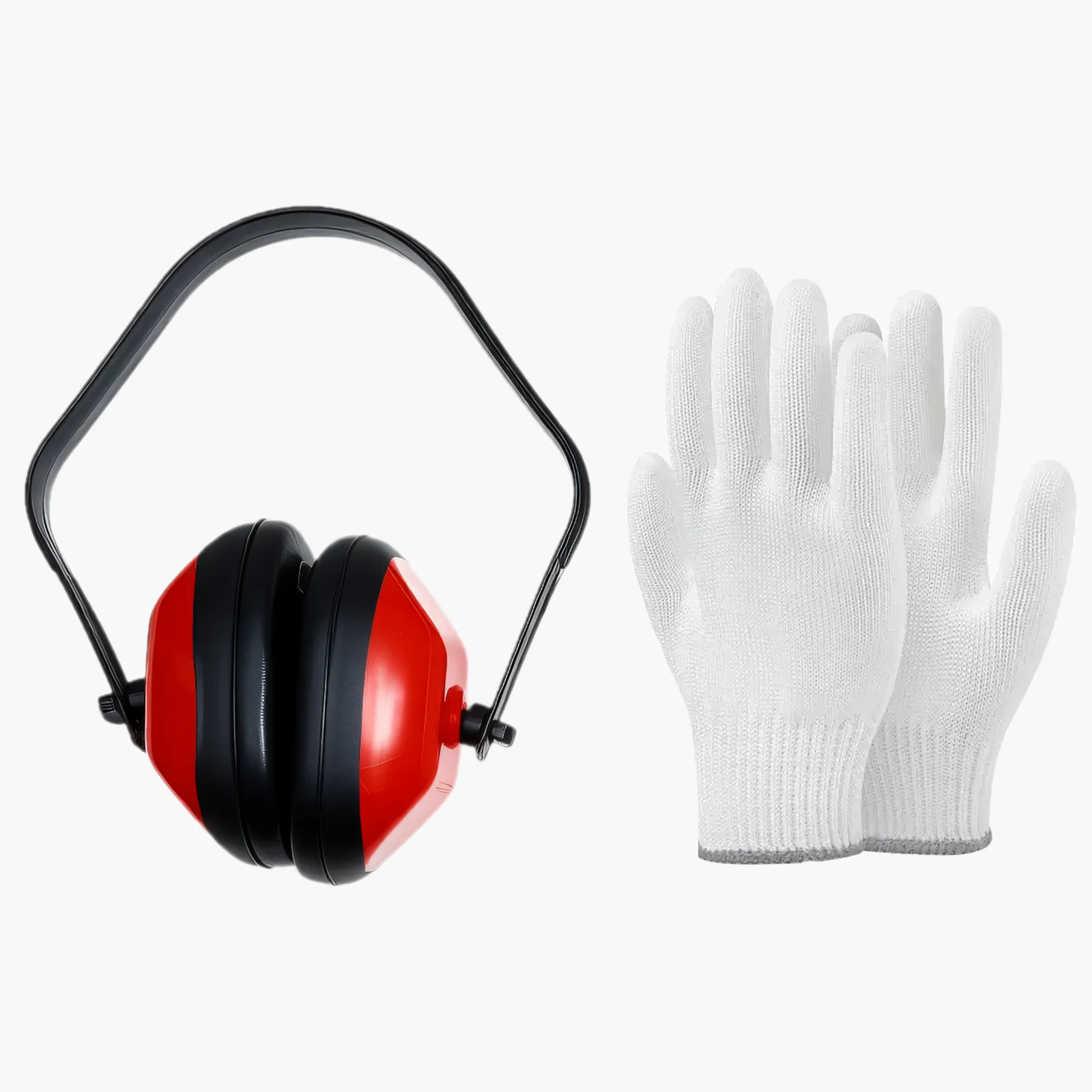 Dodáva sa s pracovnými rukavicami a chráničmi sluchu, ktoré pomáhajú znížiť hluk a kontakt počas dlhých postrekov.