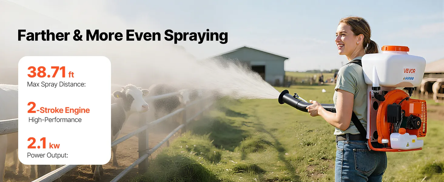 Vychutnajte si efektívne postrekovanie s týmto ručným hmlovým postrekovačom. Vďaka vysoko výkonnému motoru s výkonom 2,1 kW dosahuje vzdialenosť postreku až 38,7 m. Ľahká konštrukcia uľahčuje a zefektívňuje kontrolu kritických zvierat a rôzne úlohy spojené s postrekom.