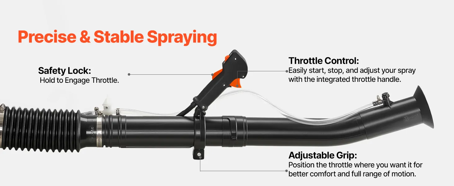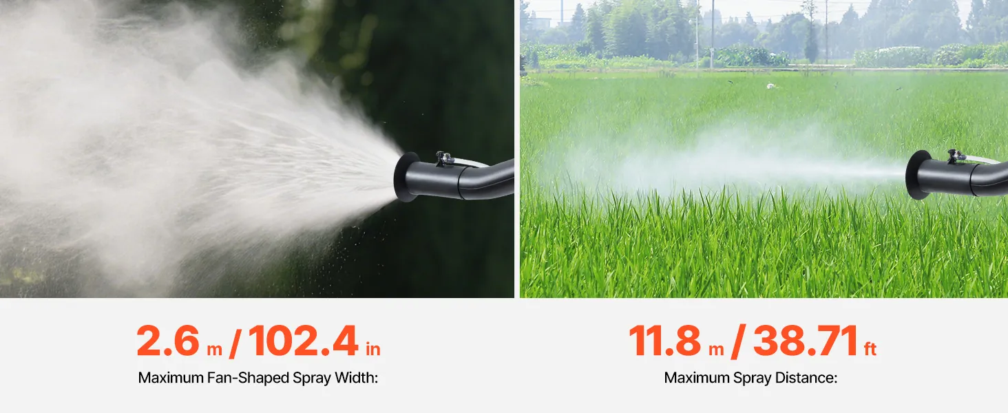 Rozprašuje až do výšky 30 m. Skvele sa hodí na dosiahnutie vysokých stromov, striech a iných vysokých alebo ťažko prístupných oblastí.