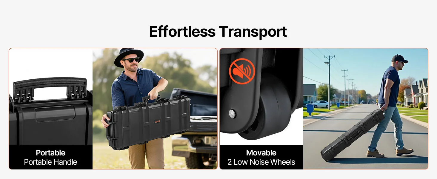 Kufor na zbraň zamykateľný, predrezaná pena, 1016 mm, IP67, kolieska