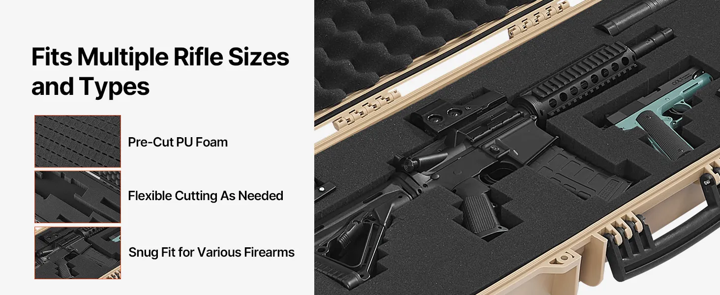 Toto tvrdé puzdro na pušky s robustnou konštrukciou zaručuje, že vaše strelné zbrane budú vždy dobre chránené a budú v bezpečí v každej situácii.