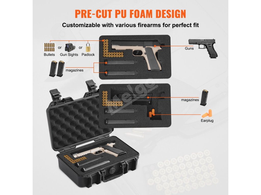 Tvrdé puzdro pre pištoľ, pena, vodotesné, zamykateľné 12.59×9.01×4.4in
