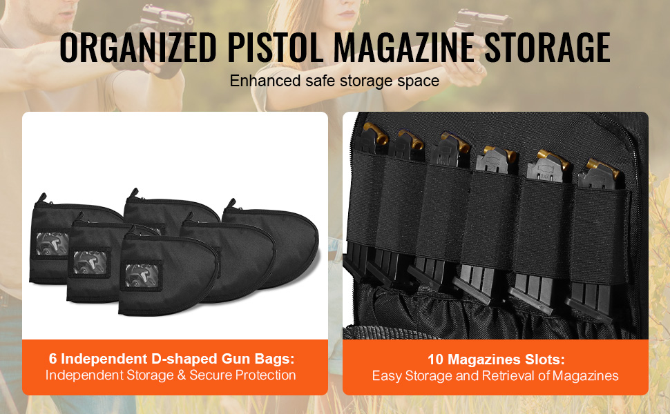 | Manažment skladovania | 6 vreciek na zbrane, 9,8 × 7,7 × 0,8 palca (25 × 19,5 × 2 cm) |