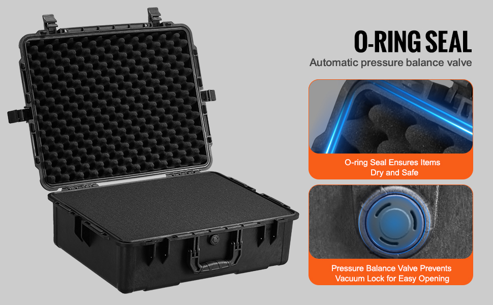 Vďaka automatickému ventilu na vyrovnávanie tlaku tento vodotesný kufor účinne vyrovnáva vnútorný a vonkajší tlak, čím zabraňuje poškodeniu v dôsledku zmien atmosférického tlaku.