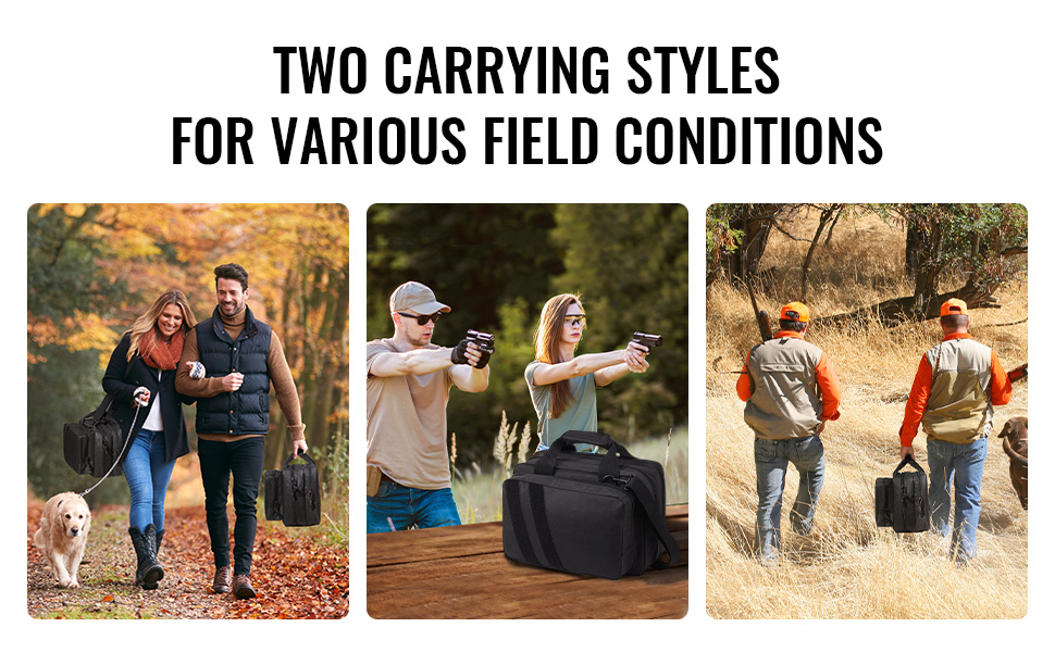 Táto taška na pištoľ je vhodná pre cestovateľov, streleckých nadšencov, poľovníkov a milovníkov outdoorových športov. Zabezpečuje bezpečnú prepravu strelných zbraní a munície na rôzne miesta v prírode, ako sú lesy a púšte.