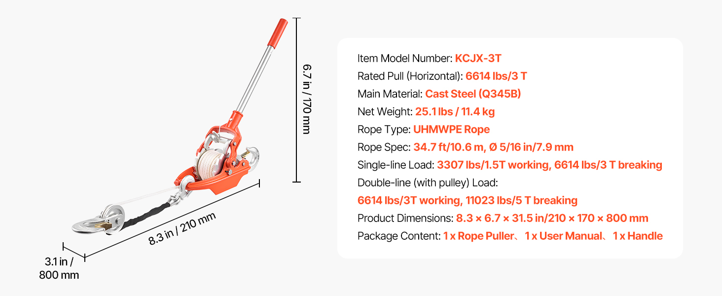 S týmto ťahadlom je ťažké ťahanie, utiahnutie a napínanie jednoduché a zábavné. Silné lano z UHMWPE spoľahlivo zvládne prácu na farme, v lesníctve, vonkajšie práce aj profesionálne použitie.