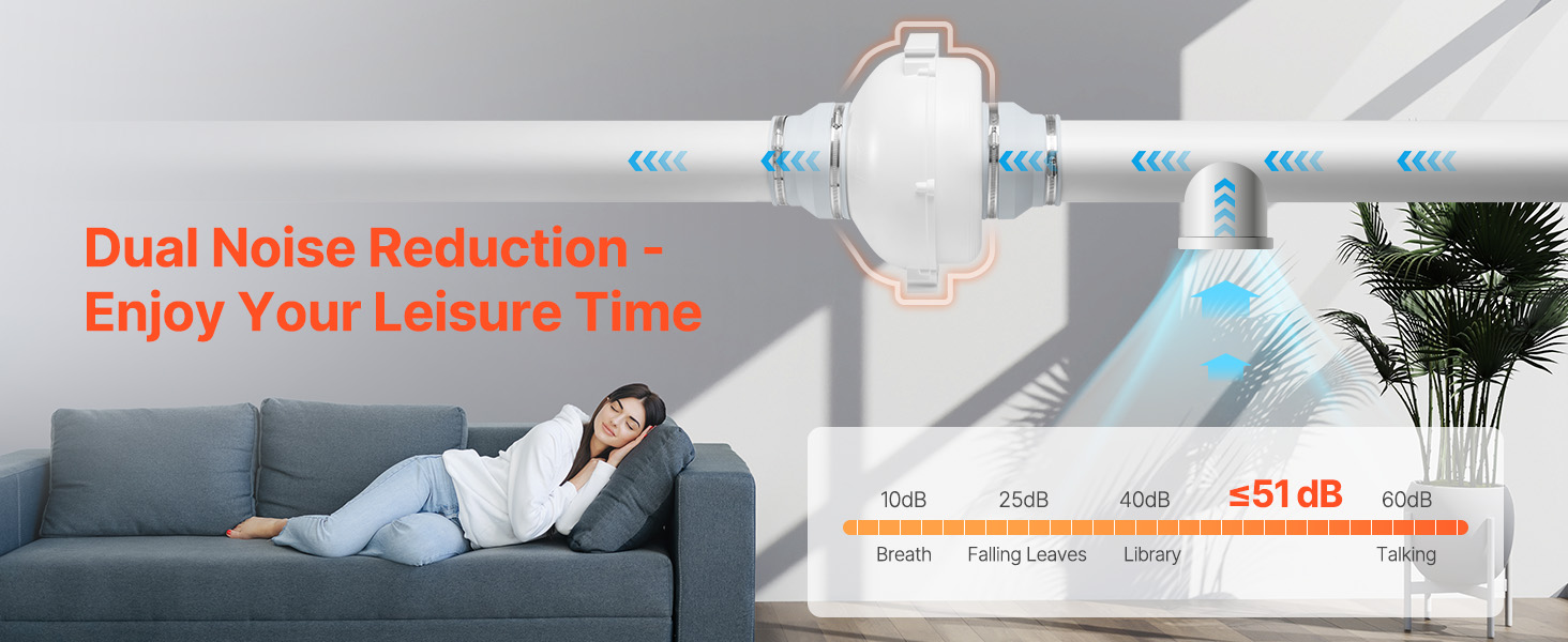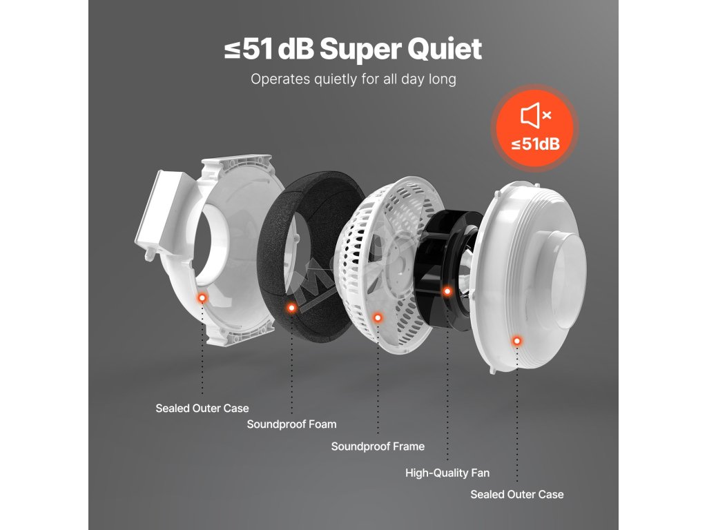 Tento zmierňovací ventilátor, ktorý je navrhnutý pre pokoj, pracuje s hlučnosťou až 51 dB, čím zabezpečuje nerušený spánok a prácu a umožňuje vám vychutnať si pokojné životné prostredie.