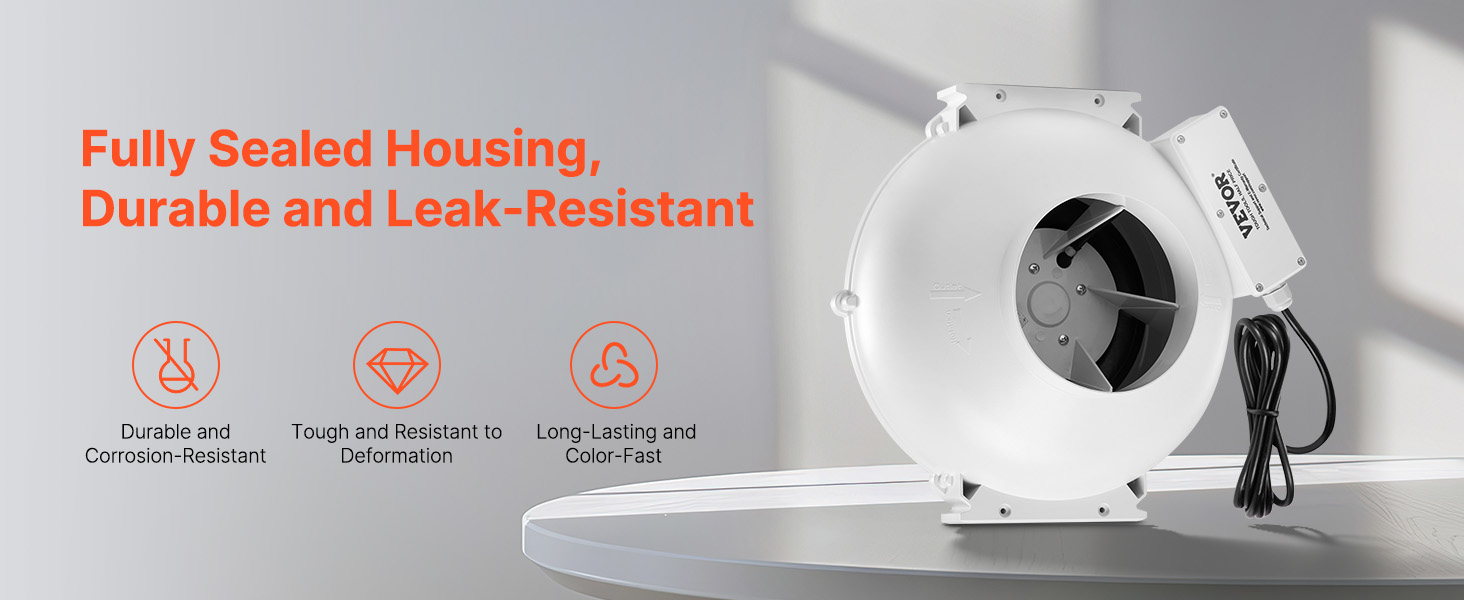 Tento kanálový ventilátor je skonštruovaný s vysokokvalitným krytom ABS a odolným motorom, takže vydrží a spoľahlivo funguje.