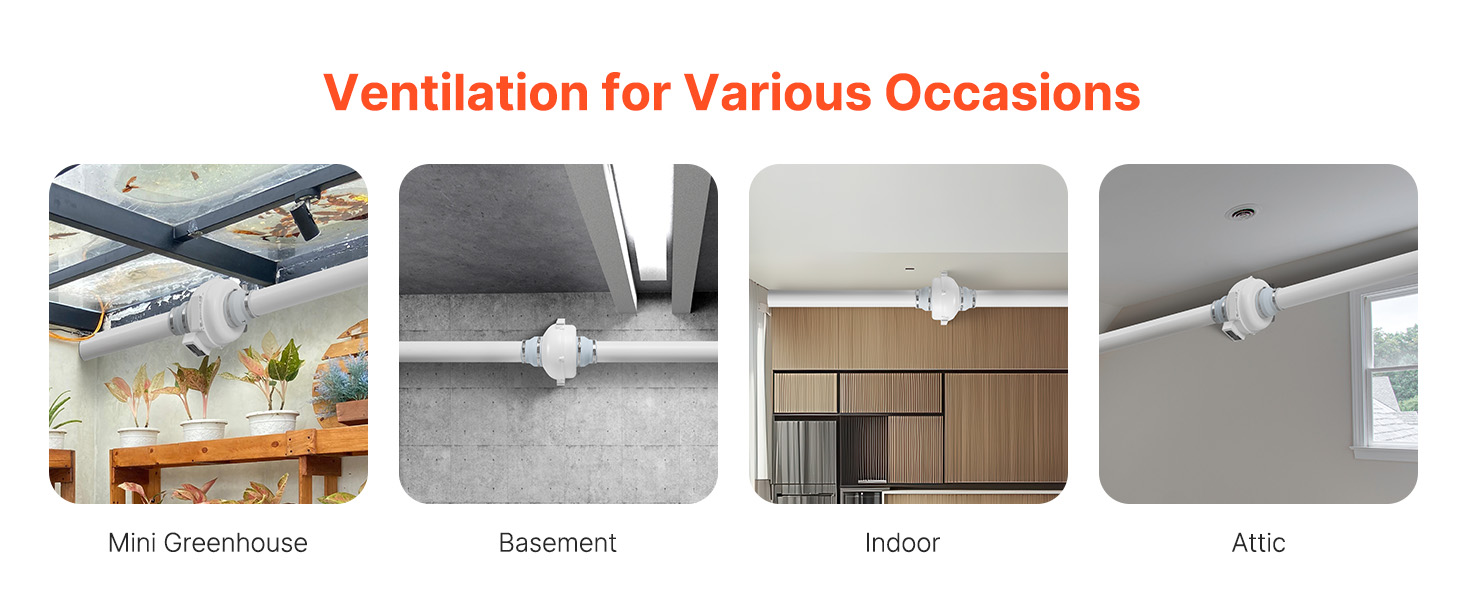 Vhodný na rôzne nastavenia vrátane pivníc, podkroví a vnútorných alebo vonkajších priestorov, čím splní vaše rozmanité potreby v oblasti vetrania.
