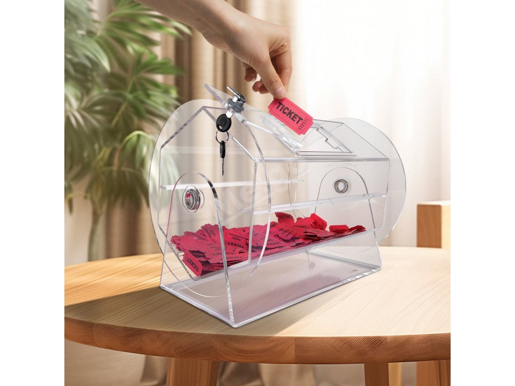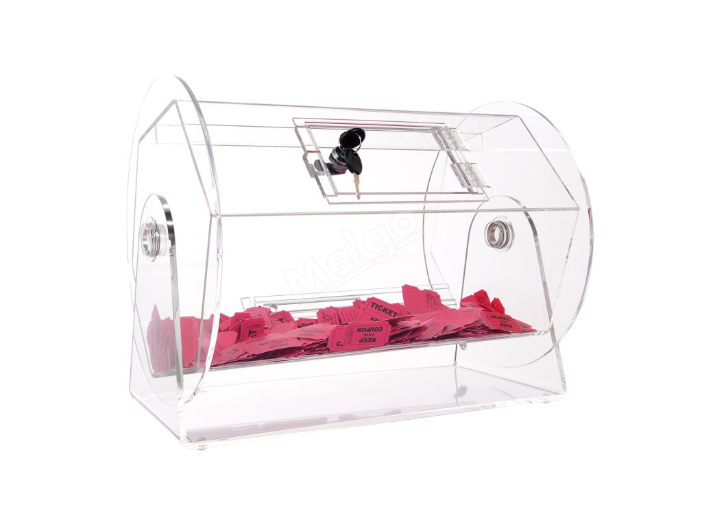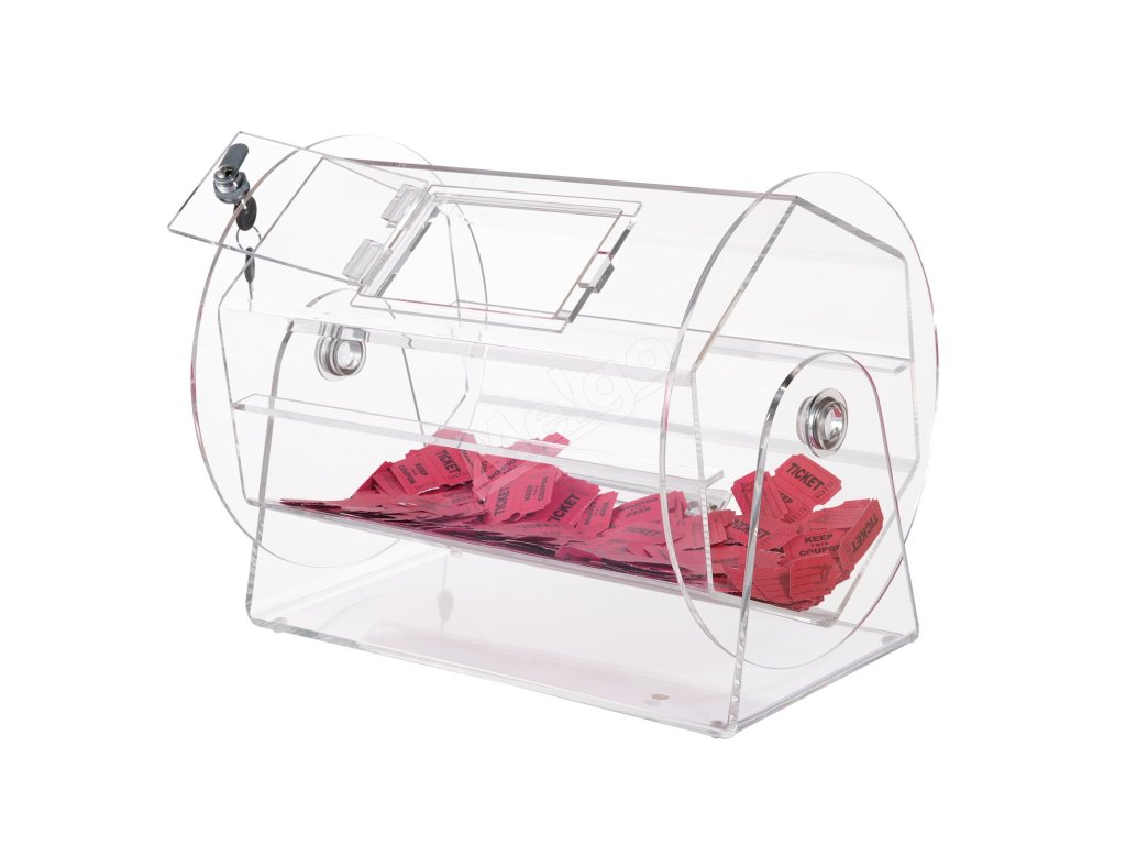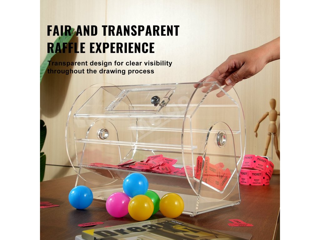 Priehľadný dizajn zabezpečuje transparentný priebeh tomboly, vďaka čomu má každý účastník rovnakú šancu byť vyžrebovaný. Lotériový bubon sa široko používa na hry bingo, hlasovanie, spoločenské stretnutia, firemné večierky, výstavy, podujatia na získavanie finančných prostriedkov a iné.