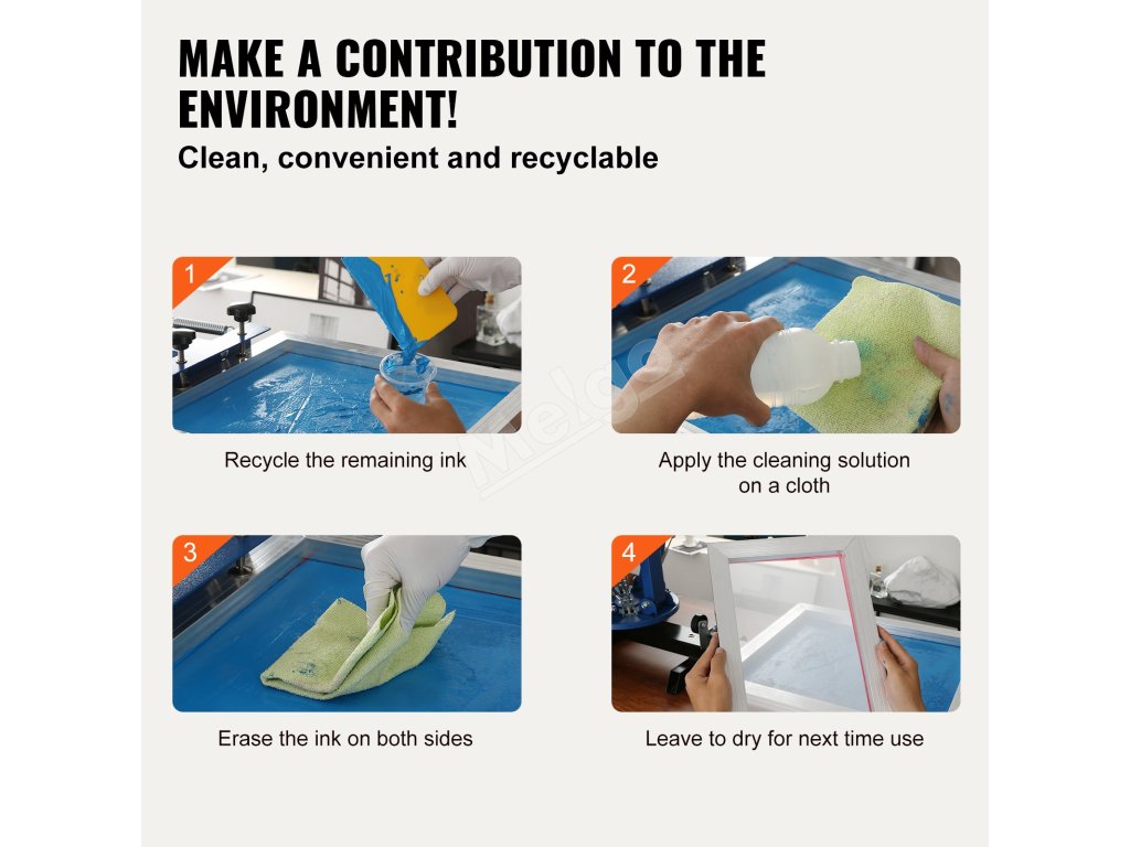 Táto súprava má sieťotlačové rámy, ktoré sa ľahko čistia. Môžete ich opakovane použiť na rôzne projekty. Nylonová sieťovina sa dá jednoducho umývať. Stačí ju opláchnuť vodou. Okrem toho sa rámy dajú ľahko vysušiť. Vďaka tomu je ich používanie veľmi pohodlné. Vzory môžete často meniť bez akýchkoľvek problémov. Časom nestrácajú svoj tvar ani napätie. Môžete ich teda opakovať viackrát. Vďaka funkcii jednoduchého čistenia je táto súprava ideálna na sieťotlač.